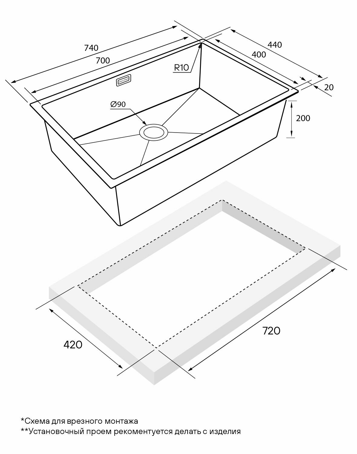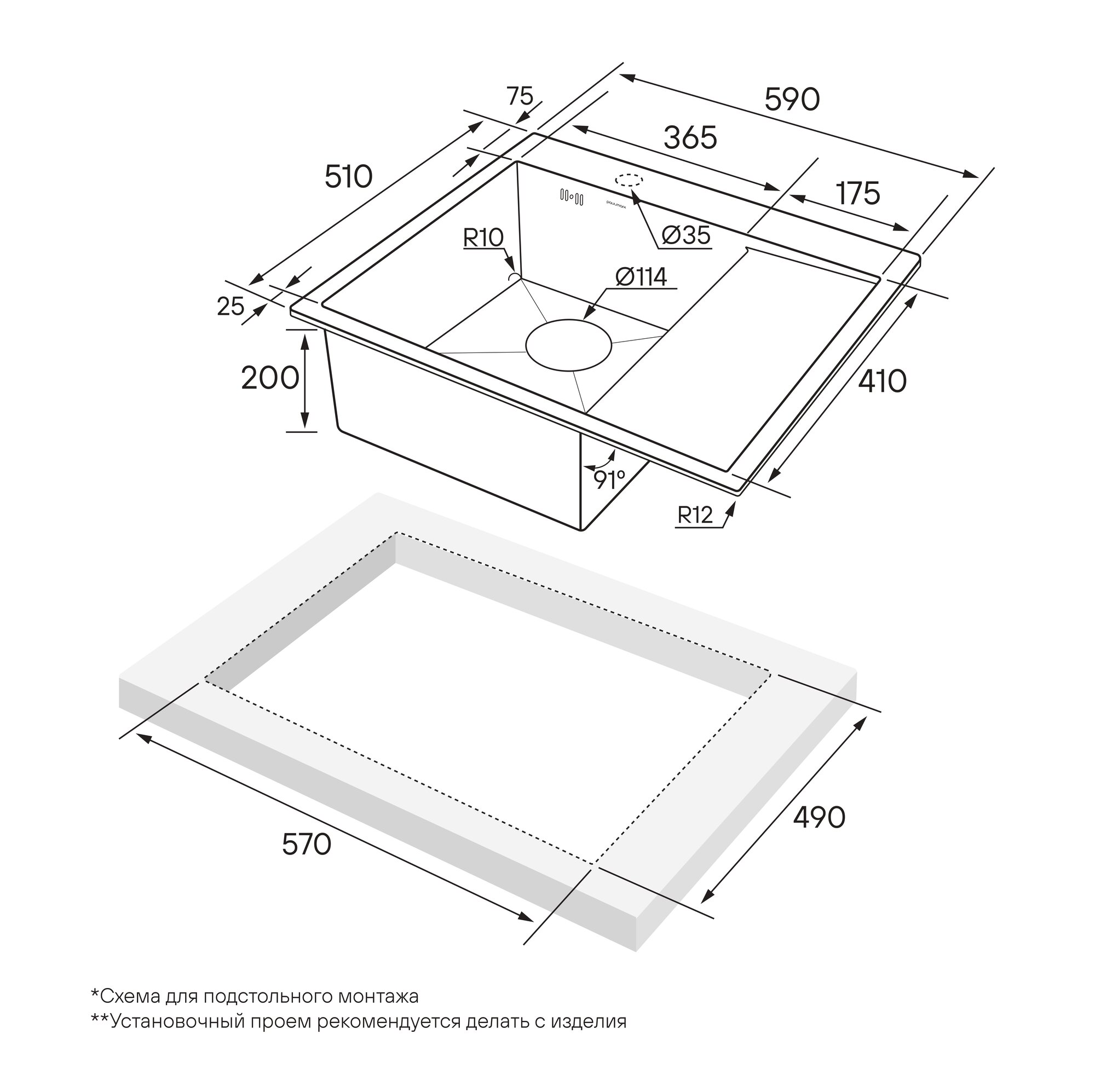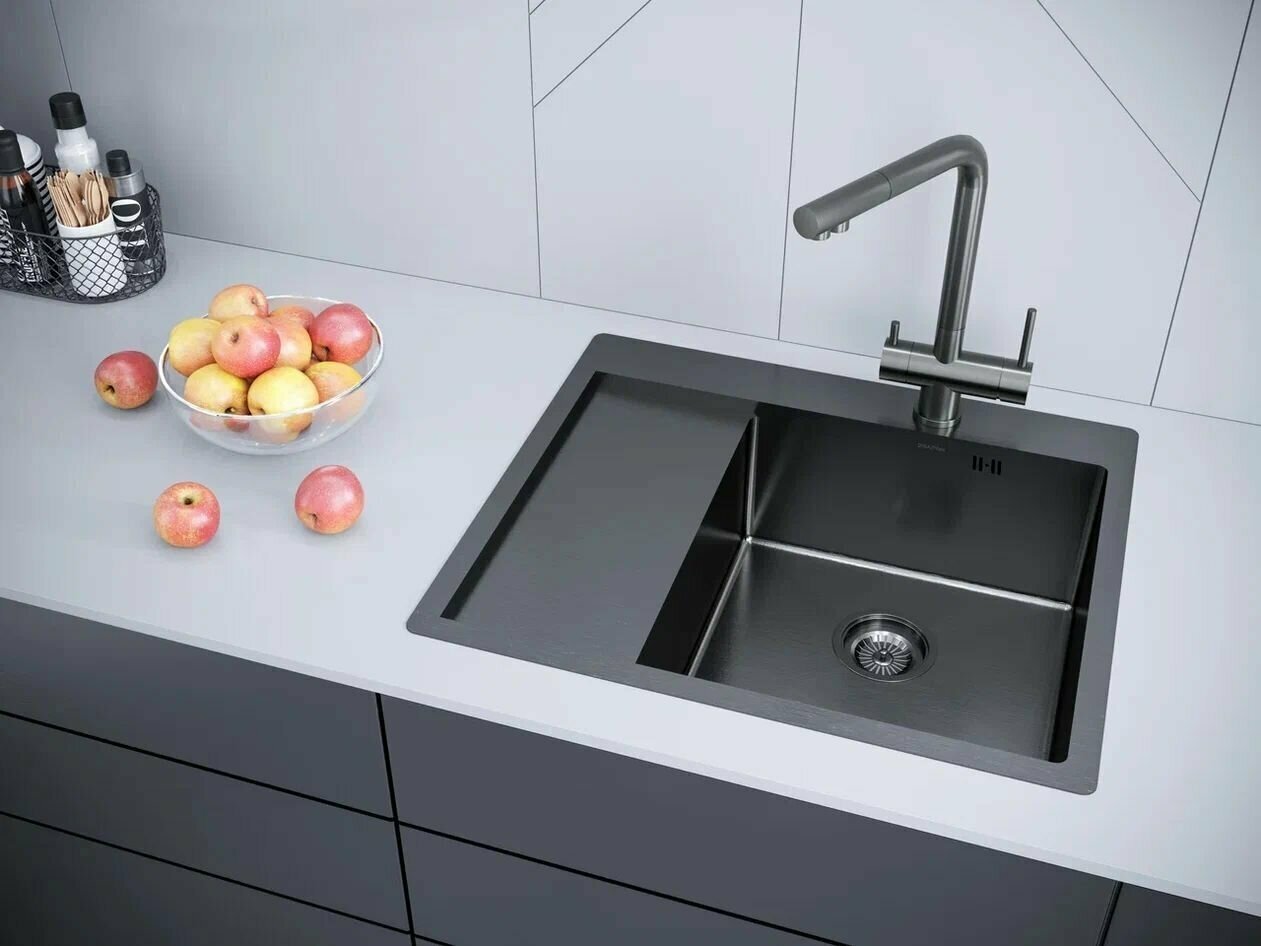 Мойка Paulmark KRONER 59F PM225951-GML вороненая сталь, левая