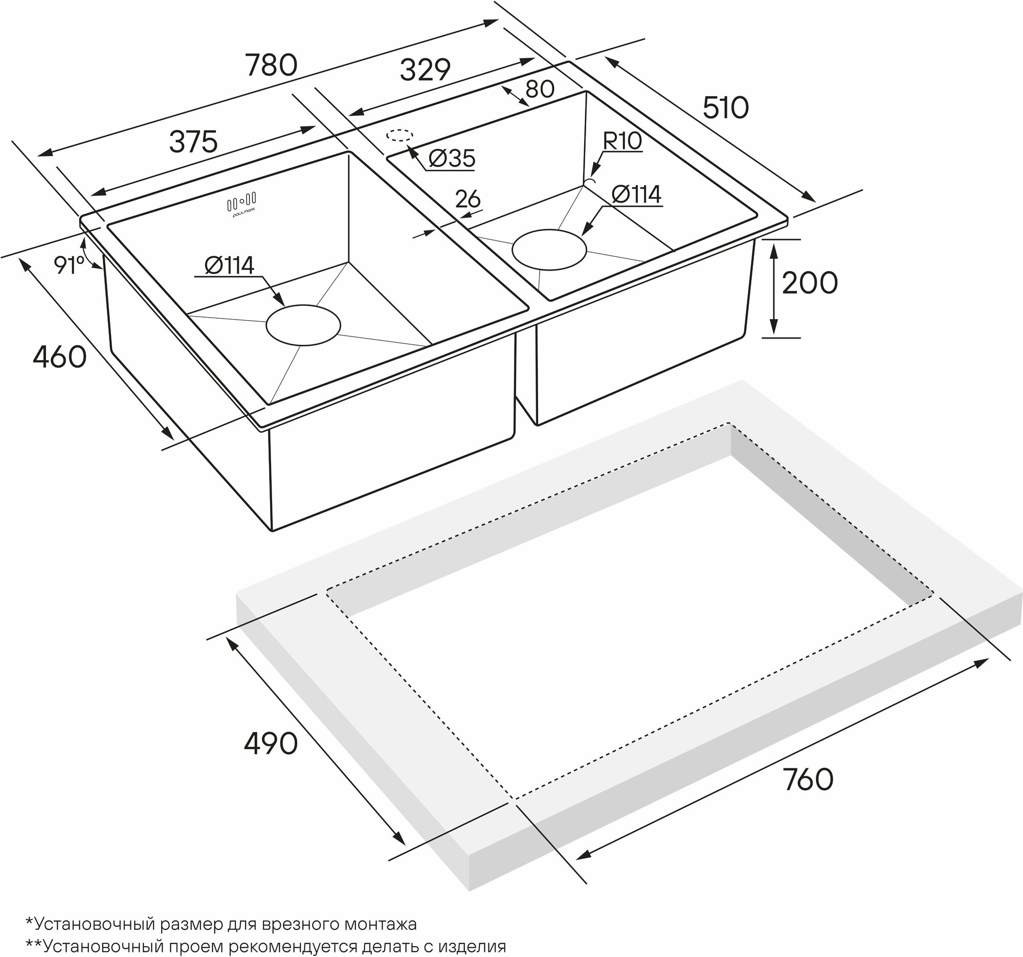 Отзывы о Мойка Paulmark KRONER 78/2S PM237851-BS брашированная нержавеющая сталь