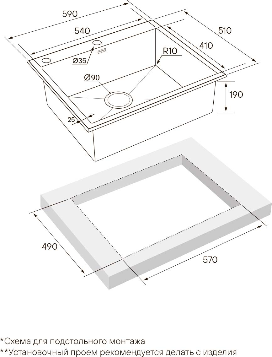 Мойка Paulmark KRONER-EDGE 59 PM775951-GM вороненая сталь