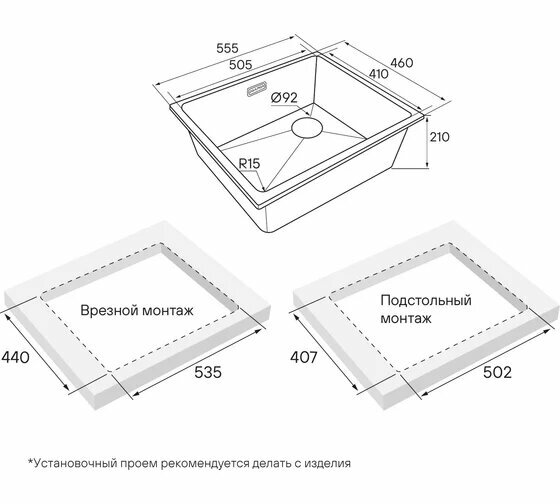 Ширина мойки