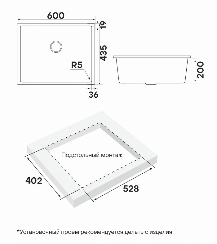 Мойка Paulmark NEO CLASSIC 60 PM966044-UGR URBAN GREY