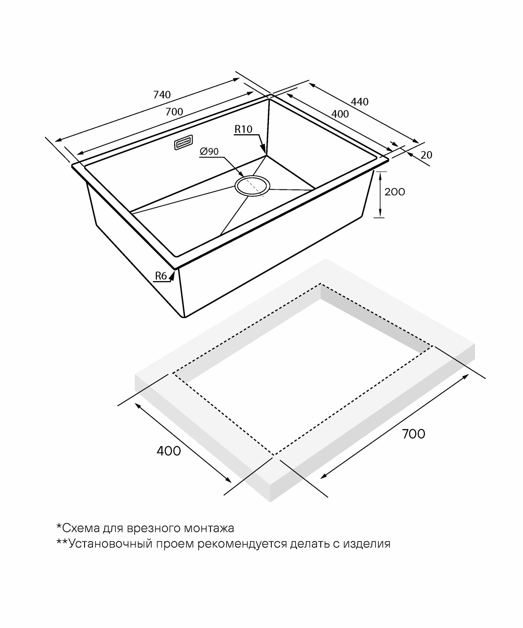 Мойка Paulmark NEXT-SKEW 74 UNI PM887444-LG светлое золото