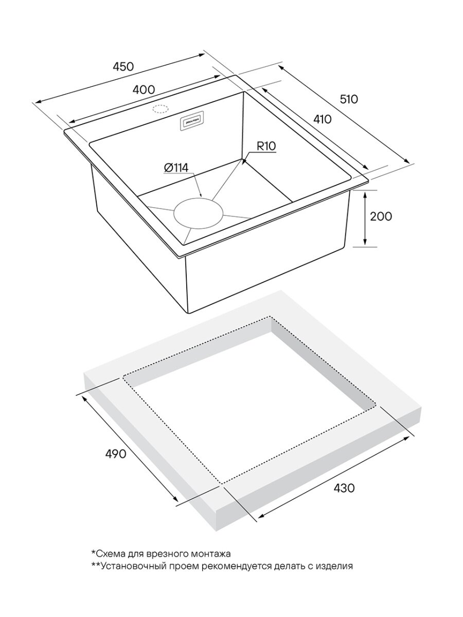 Мойка Paulmark VELTEN 45 PM804551-GM вороненая сталь