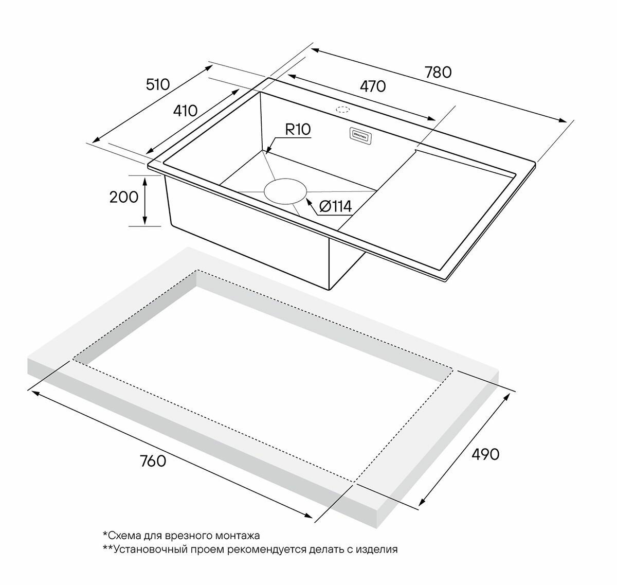 Комплект крепежей для врезного монтажа, Отводная арматура (слив-перелив), Сифон бутылочного типа с подключением посудомоечной машины (ПММ).