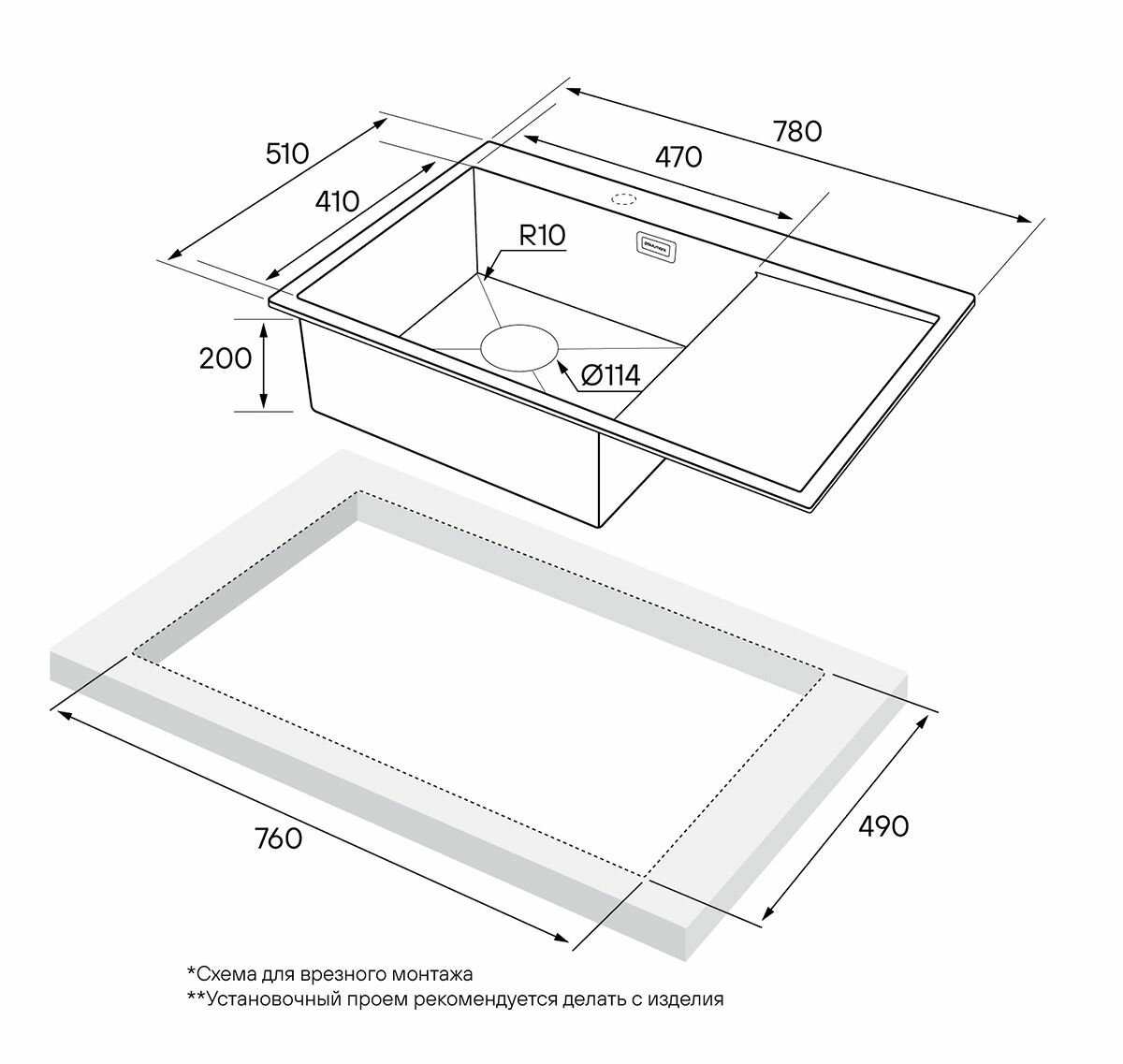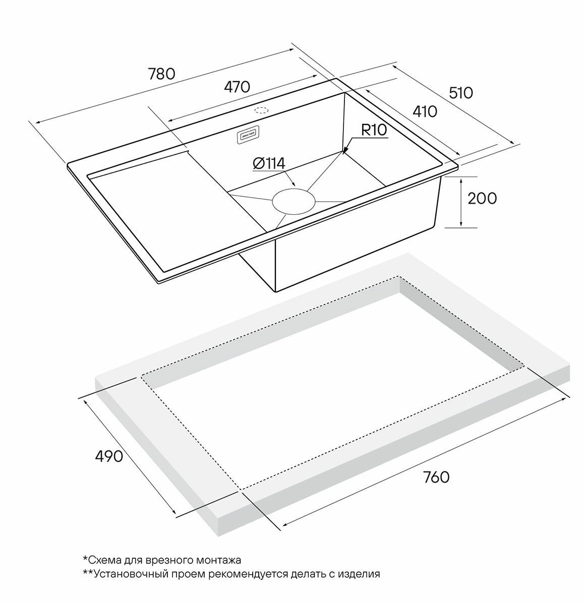 Мойка Paulmark VELTEN 78F PM807851-GMR вороненая сталь, правая