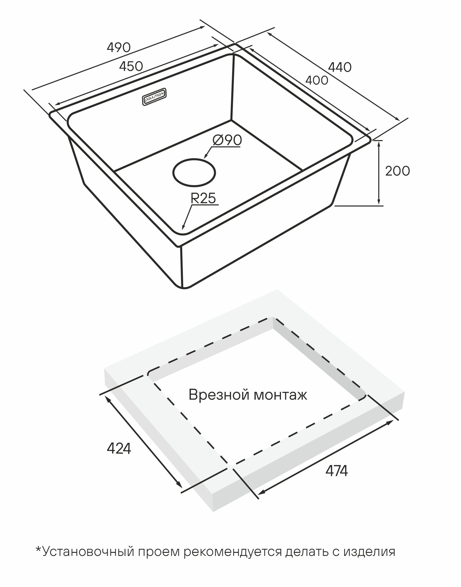 Мойка Paulmark YUNI 49 UNI YU49-LG светлое золото