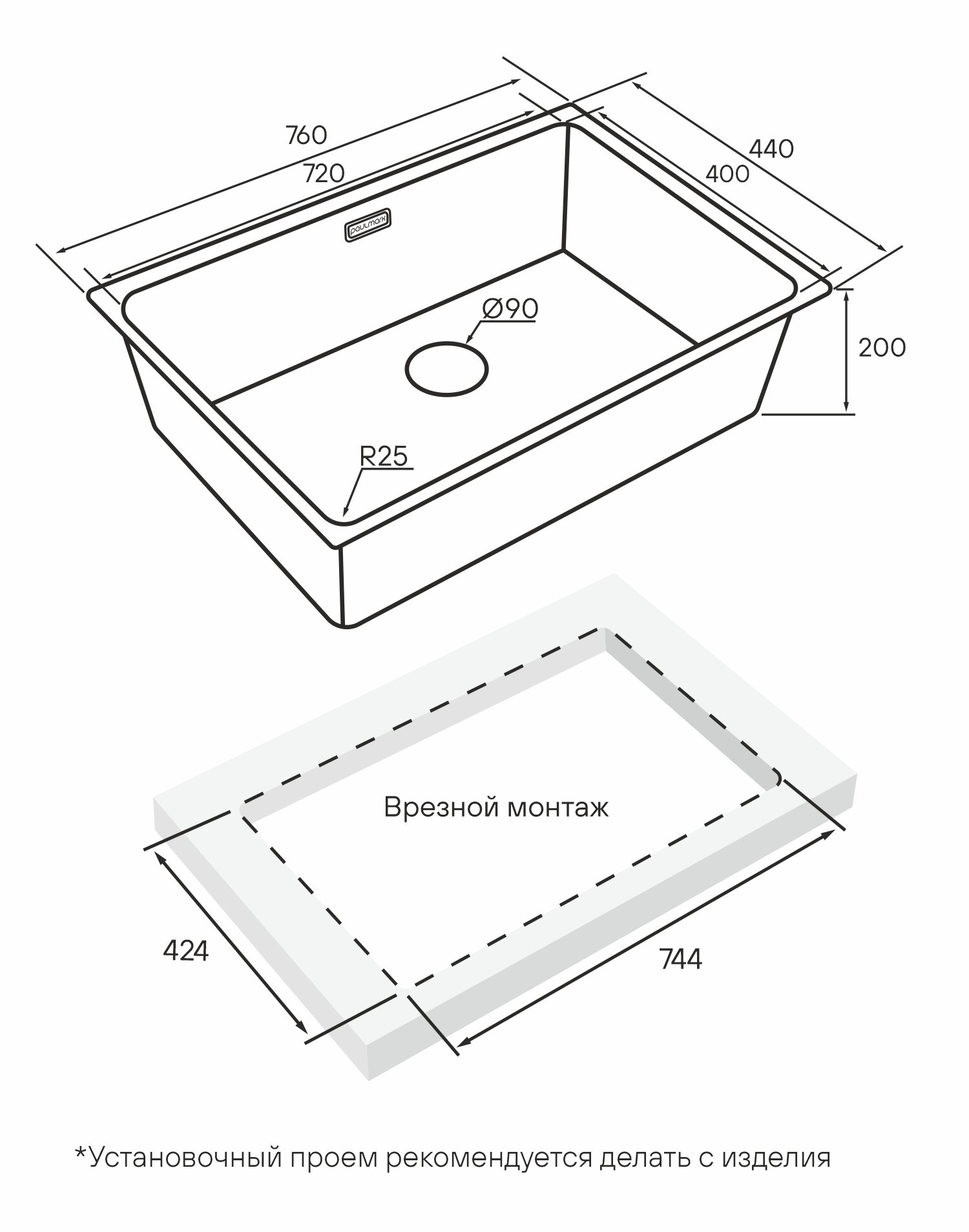 Мойка Paulmark YUNI 76 UNI YU76-MBN матовый черный