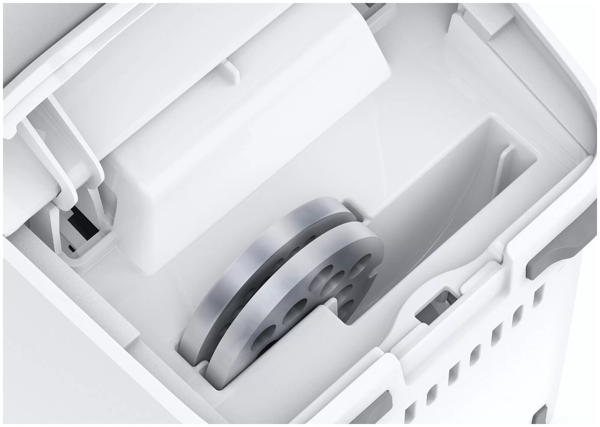 отсек для хранения формовочных дисков; материал лотка: пластик; максимальная высота посуды: 130 мм; количество насадок для приготовления колбас: 1; количество насадок-терок: 2; количество насадок для шинковки: 1