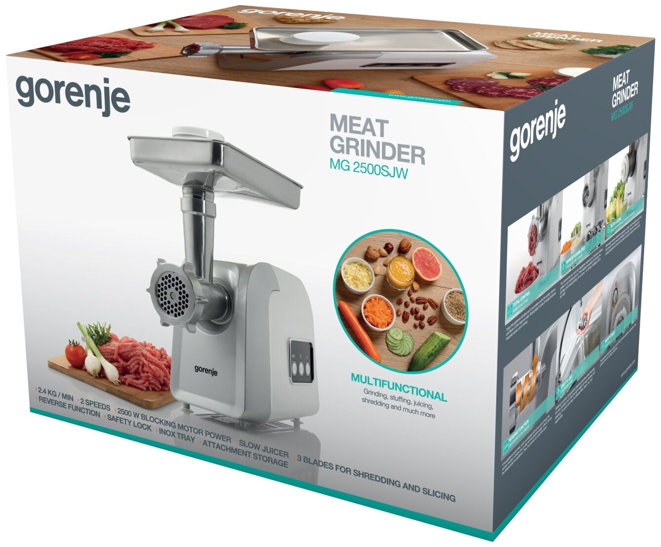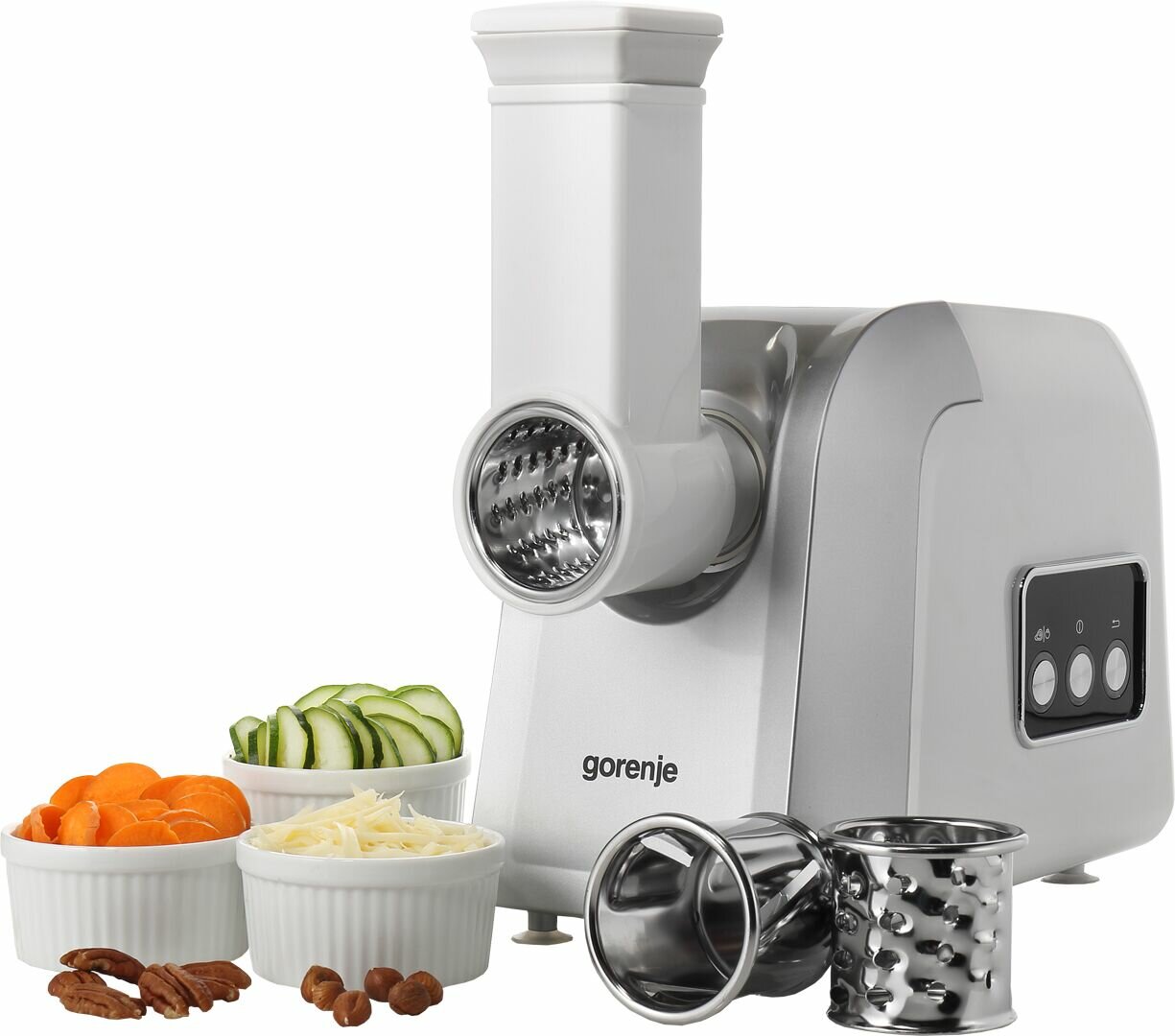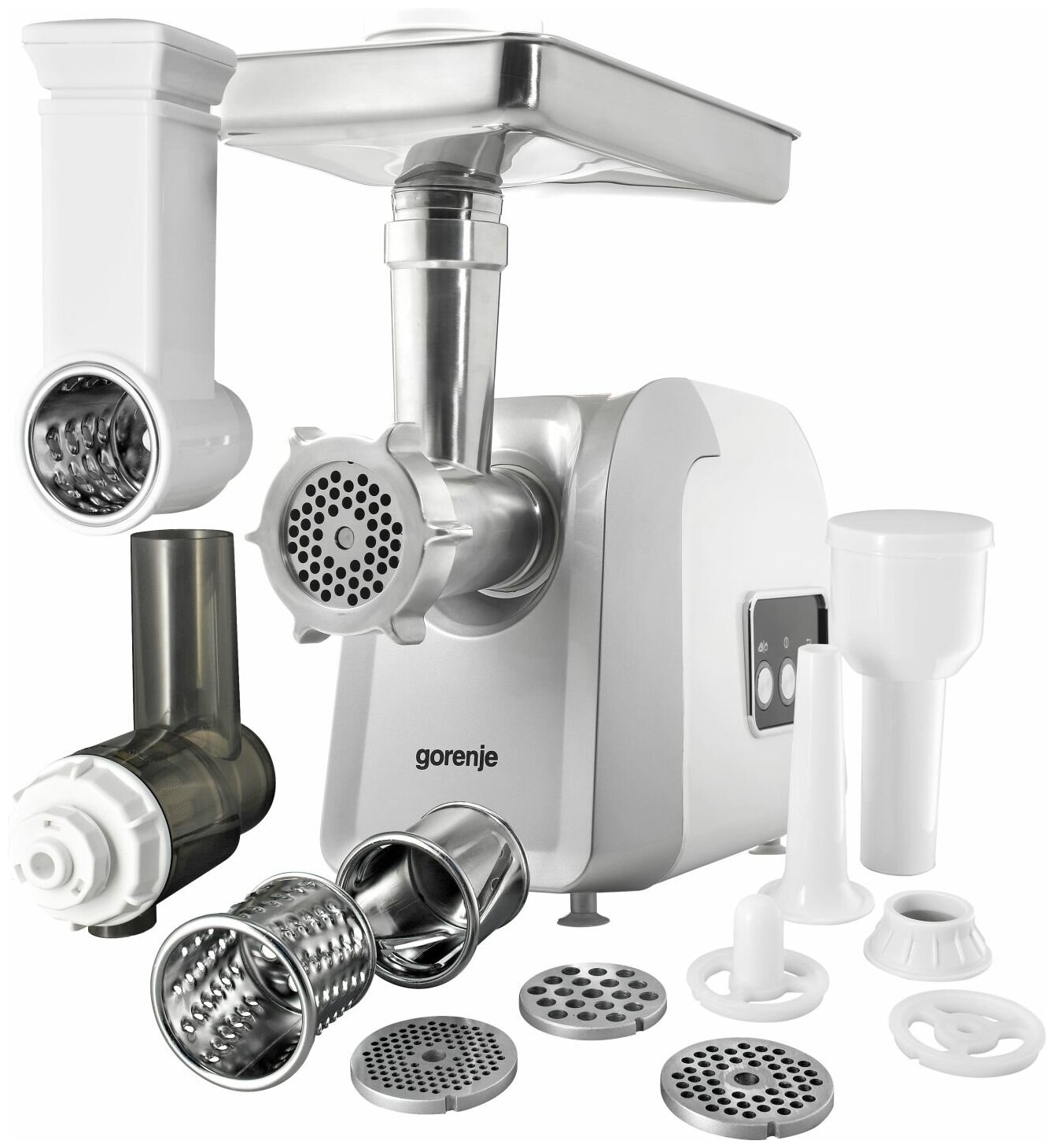 защита от перегрузки, отсек для сетевого шнура, отсек для хранения насадок, прорезиненные ножки, насадки для приготовления колбас, толкатель