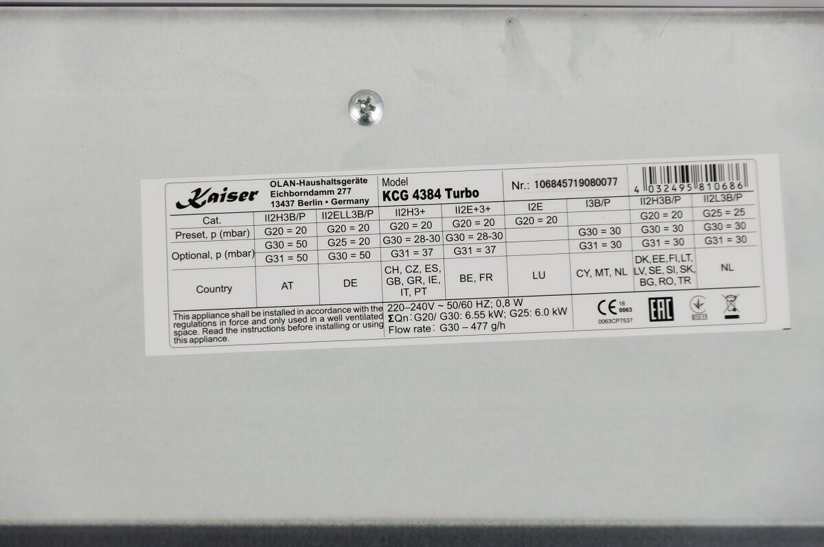 Отзывы о Газовая варочная панель Kaiser KCG 4380 Turbo
