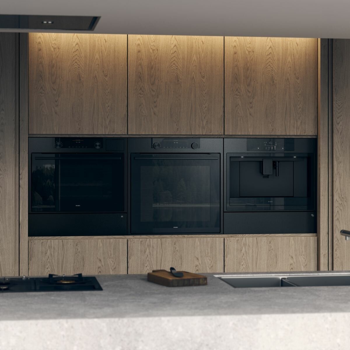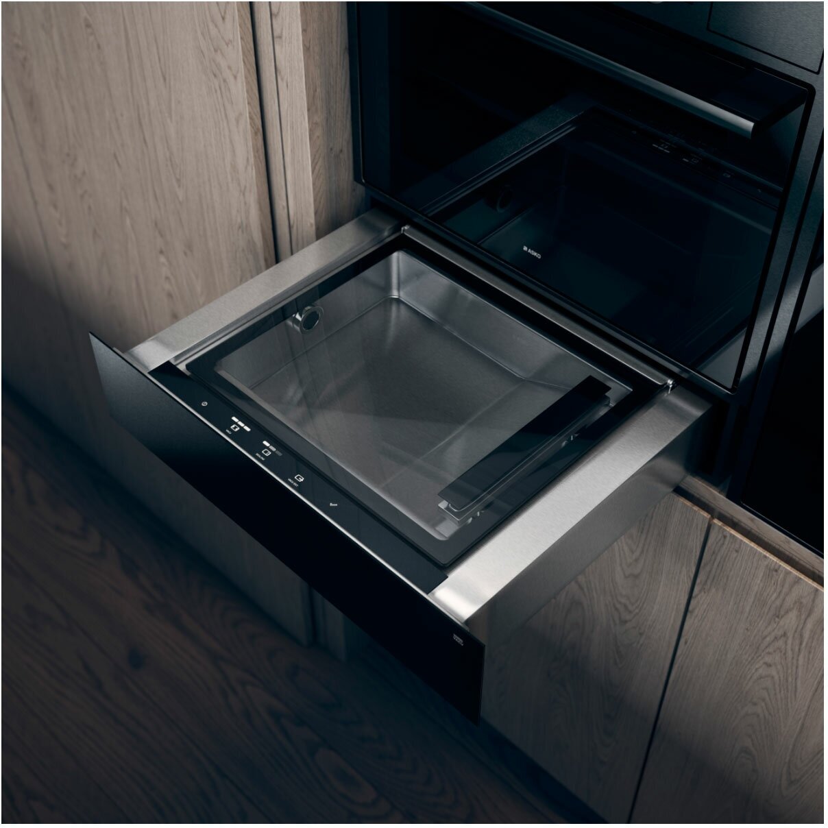 встраиваемый; ящик на телескопических направляющих; нажимной механизм открывания; три уровня запайки для пакетов различной толщины