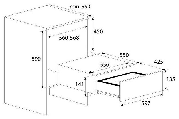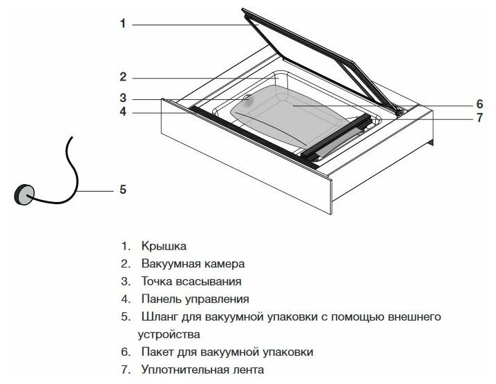 встраиваемый; ящик на телескопических направляющих; нажимной механизм открывания; три уровня запайки для пакетов различной толщины