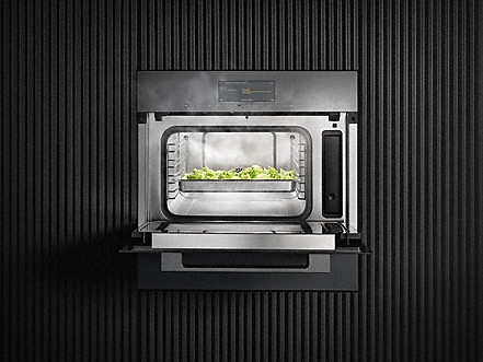 Пароварка с СВЧ Miele DGM7440 OBSW имеет стильный вид. Чтобы привлекательность устройства сохранялась дольше, на фронтальную часть нанесено покрытие CleanGlass. Оно не даёт оставлять белёсый налёт от пара, а также следы от пальцев. Камера из нержавеющей стали с рельефным покрытием защищена от коррозии и легко моется благодаря покрытию PerfectClean, которое помогает поддерживать гигиену.