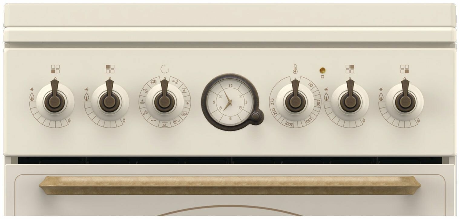 вертел, воздушное охлаждение корпуса, дисплей, подсветка духовки, телескопические направляющие, часы, чугунные решетки, эмаль легкой чистки, ящик для посуды, 11, Быстрый нагрев, Вентилятор охлаждения, Встроенные часы, Встроенный парогенератор, Двухуровневое приготовление, Дизайн Ретро, Есть, Полностью стеклянная внутренняя дверца, крышка
