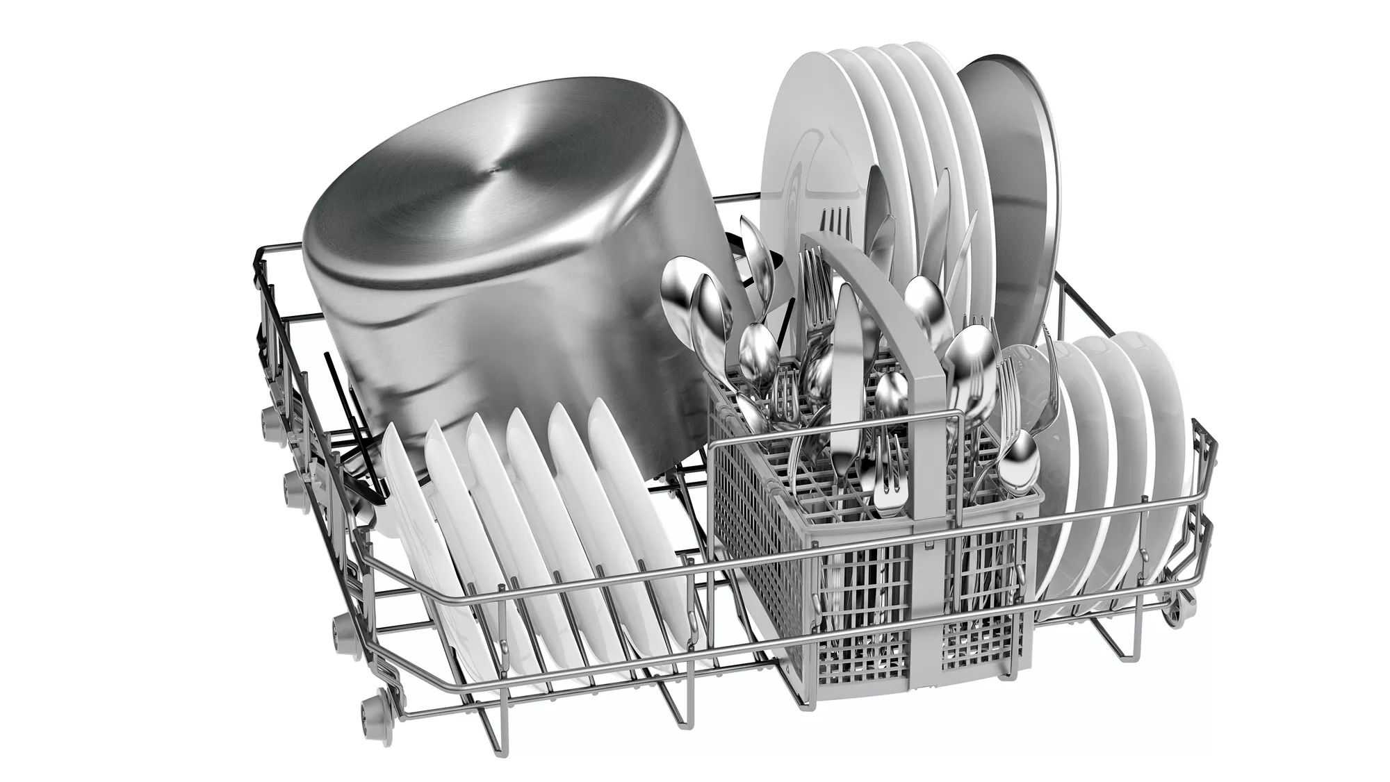 держатель для бокалов, корзина для столовых приборов, 2 полочки для чашек, Посудомоечная машина, Посудомоечная машина - 1 шт., Посудомоечная машина BOSCH SMS25AI07E, документация, направляющие для тарелок в нижнем коробе, складные направляющие для тарелок - 2шт
