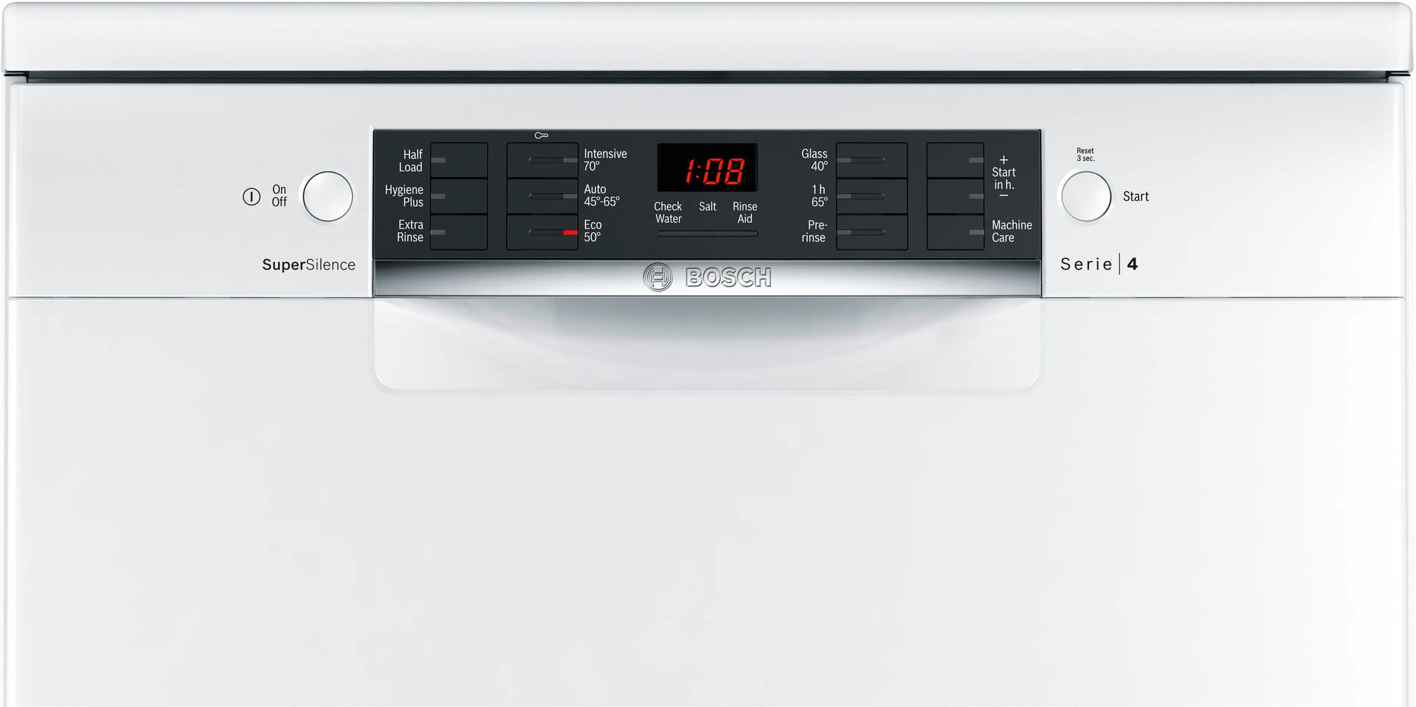 держатель для бокалов, корзина для столовых приборов, Посудомоечная машина - 1 шт., Посудомоечная машина Bosch SMS46NW01B, Сливной шланг Наливной шланг Документация, белый, документация, инструкция - 1 штука, посудомоечная машина - 1 шт, посудомоечная машина - 1 шт, документация