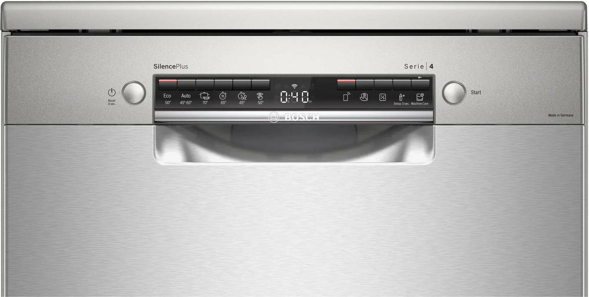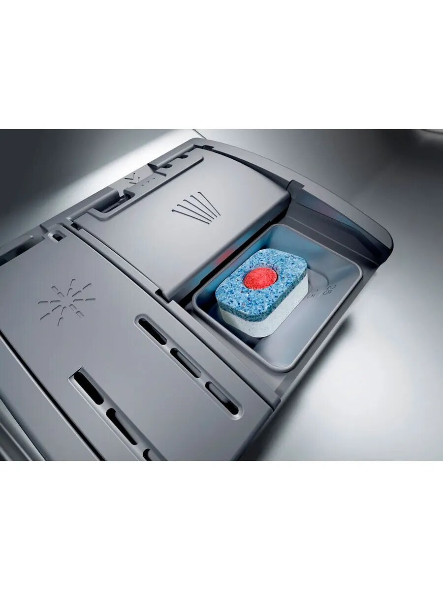 внутренняя поверхность из нержавеющей стали, дисплей, использование средств 3 в 1, обработка против отпечатков пальцев, проточный водонагреватель, регулируемая по высоте корзина для посуды, таймер отсрочки, Автоматическое открывание двери, Датчик прозрачности воды, Звуковой сигнал, Отсрочка запуска, Поддон для столовых приборов, Полка для чашек, Половинная загрузка, Регулировка высоты корзин, Таймер
