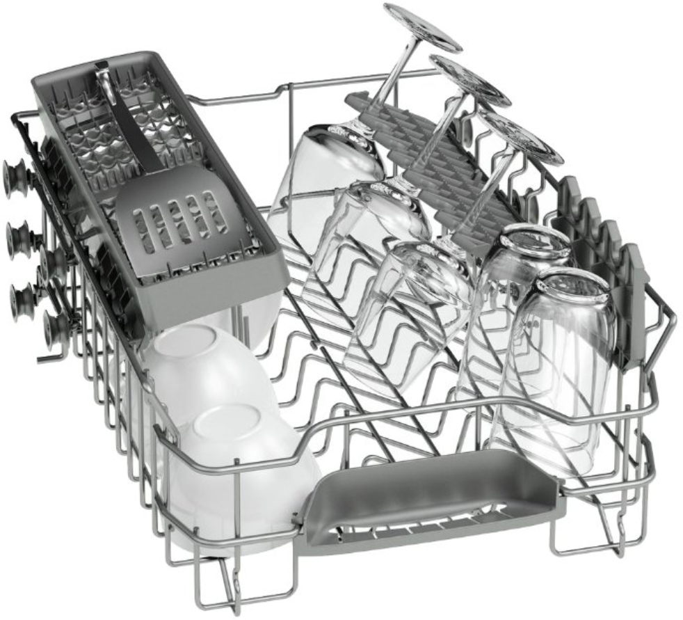 автоматическая установка жесткости воды, внутренняя поверхность из нержавеющей стали, использование средств 3 в 1, регулируемая по высоте корзина для посуды, Съемные контейнеры для столовых приборов, быстрая мойка, защита от детей, индикатор наличия ополаскивателя, индикатор наличия соли, технология Duo Power, технология Glass Protection, технология Hygiene Dry, экономичная программа