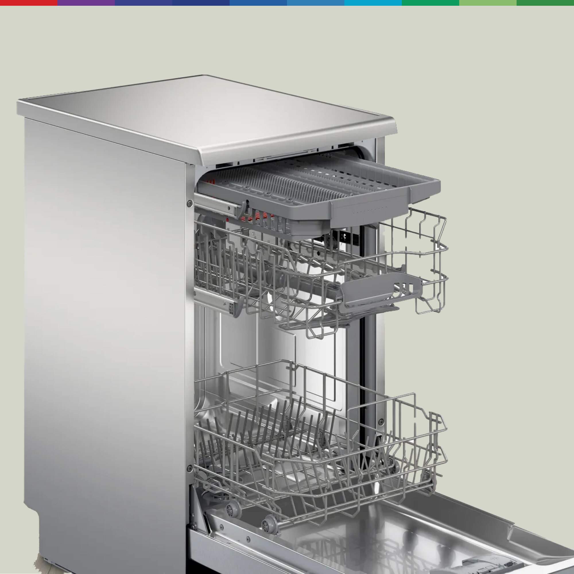 внутренняя поверхность из нержавеющей стали, дисплей, использование средств 3 в 1, таймер отсрочки, Отсрочка запуска, Поддон для столовых приборов, Полка для чашек, Половинная загрузка, Съемные контейнеры для столовых приборов