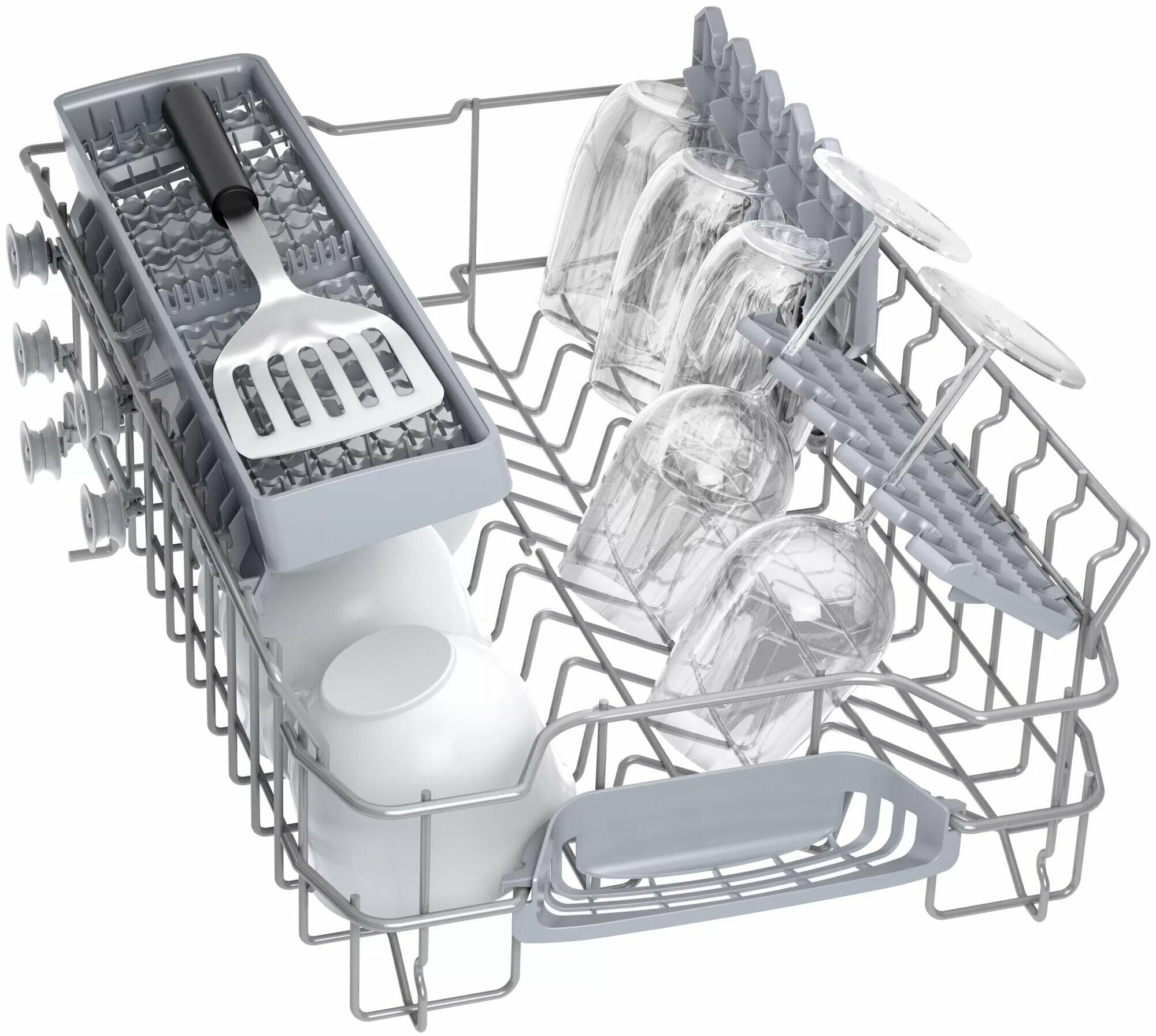 держатель для бокалов, корзина для столовых приборов, Посудомоечная машина BOSCH SRS2IKW1BR, белый, инструкция - 1 штука, корзина для столовых приборов;держатель для бокалов