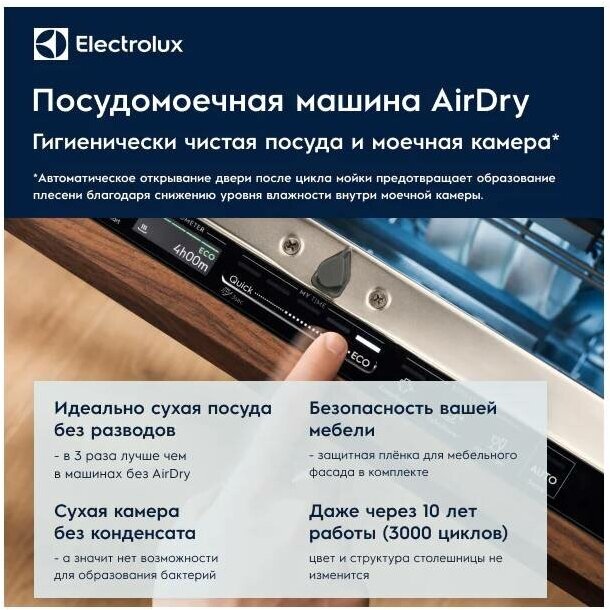 дисплей, использование средств 3 в 1, Съемные контейнеры для столовых приборов, Автоматическое открывание двери, Автооткрытие дверцы, Датчик прозрачности воды, Двойное вращающееся коромысло, Звуковой сигнал, Отсрочка запуска, Поддон для столовых приборов, Полка для чашек, Регулировка высоты корзин, Съемные контейнеры для столовых приборов, Съемные насадки разбрызгивателей, Таймер, звуковой сигнал, поддон для столовых приборов, съемные контейнеры для столовых приборов