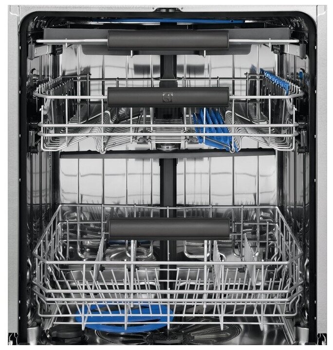 внутренняя поверхность из нержавеющей стали, дисплей, использование средств 3 в 1, регулируемая по высоте корзина для посуды, сенсор чистоты воды, таймер отсрочки, Специальные держатели винных бокалов SoftGrip, Шланг PEX, индикатор наличия ополаскивателя, индикатор наличия соли