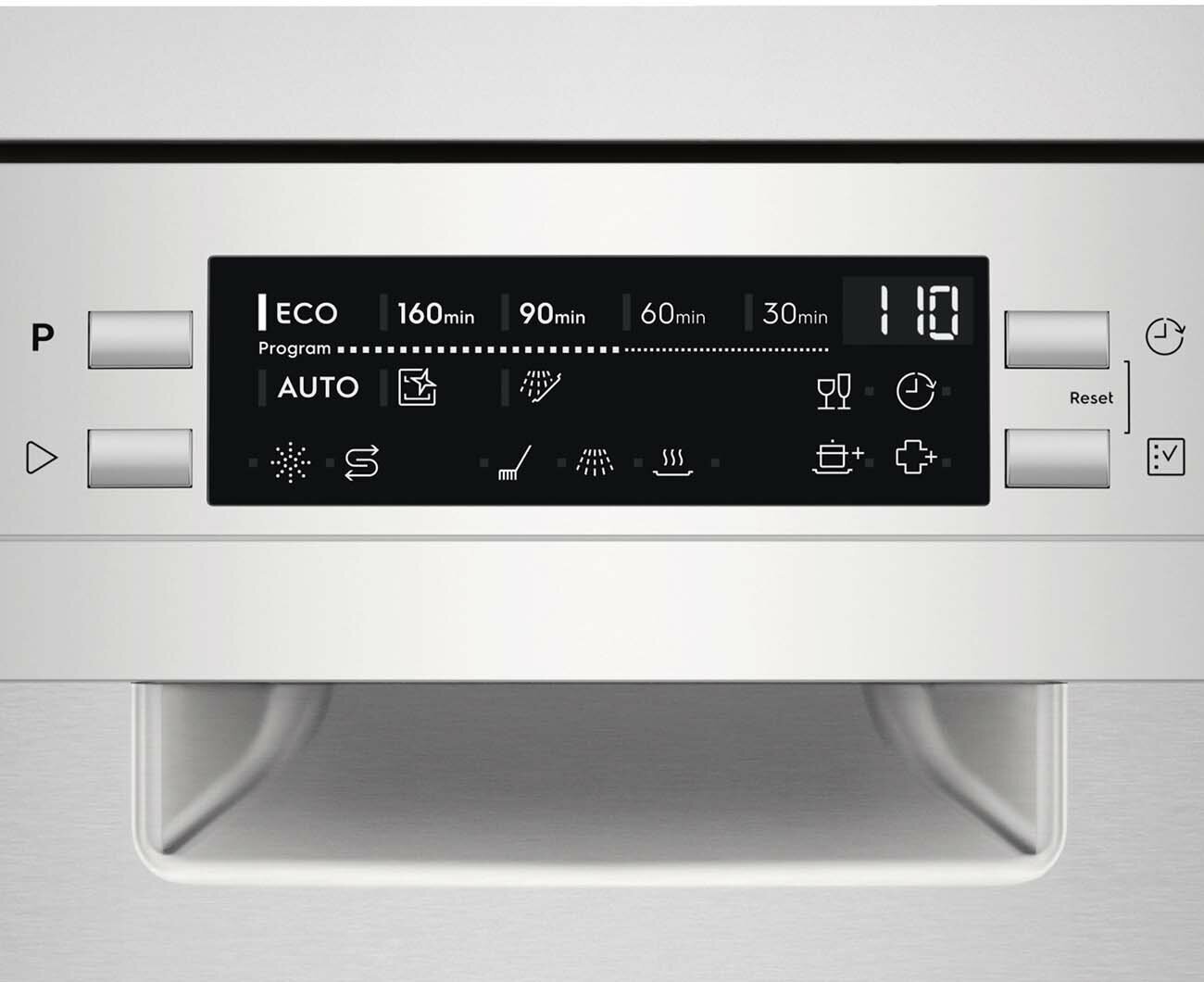 автоматическое открывание дверцы по завершении цикла, внутренняя поверхность из нержавеющей стали, дисплей, регулируемая по высоте корзина для посуды, сенсор чистоты воды, таймер отсрочки