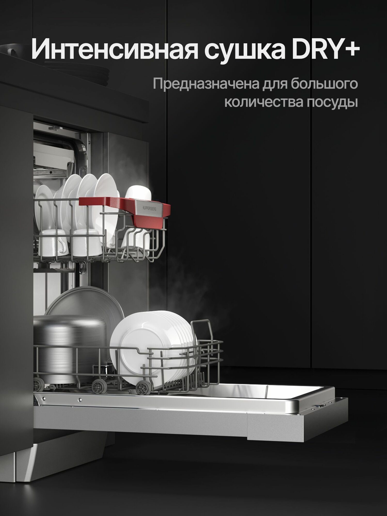 Индикация времени программы; Индикация режима работы; 3 корзины; Неполная загрузка; Полки для кружек; Складные держатели для тарелок; Съемная верхняя крышка; Регулировка высоты короба; Полка для длинных ножей; Самодиагностика неисправностей