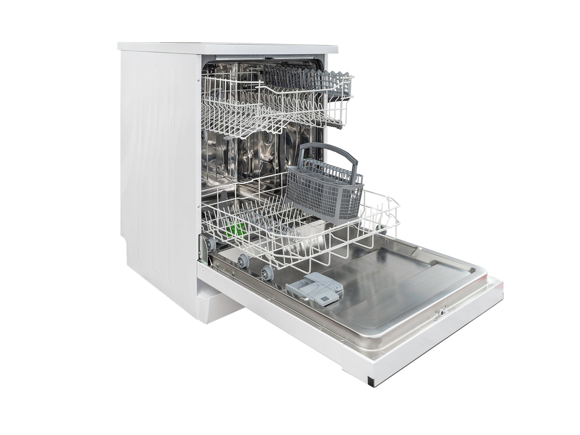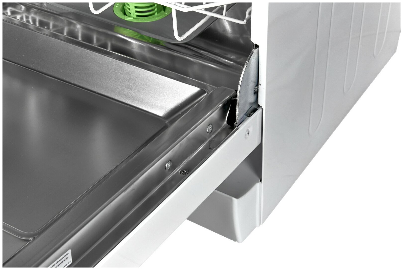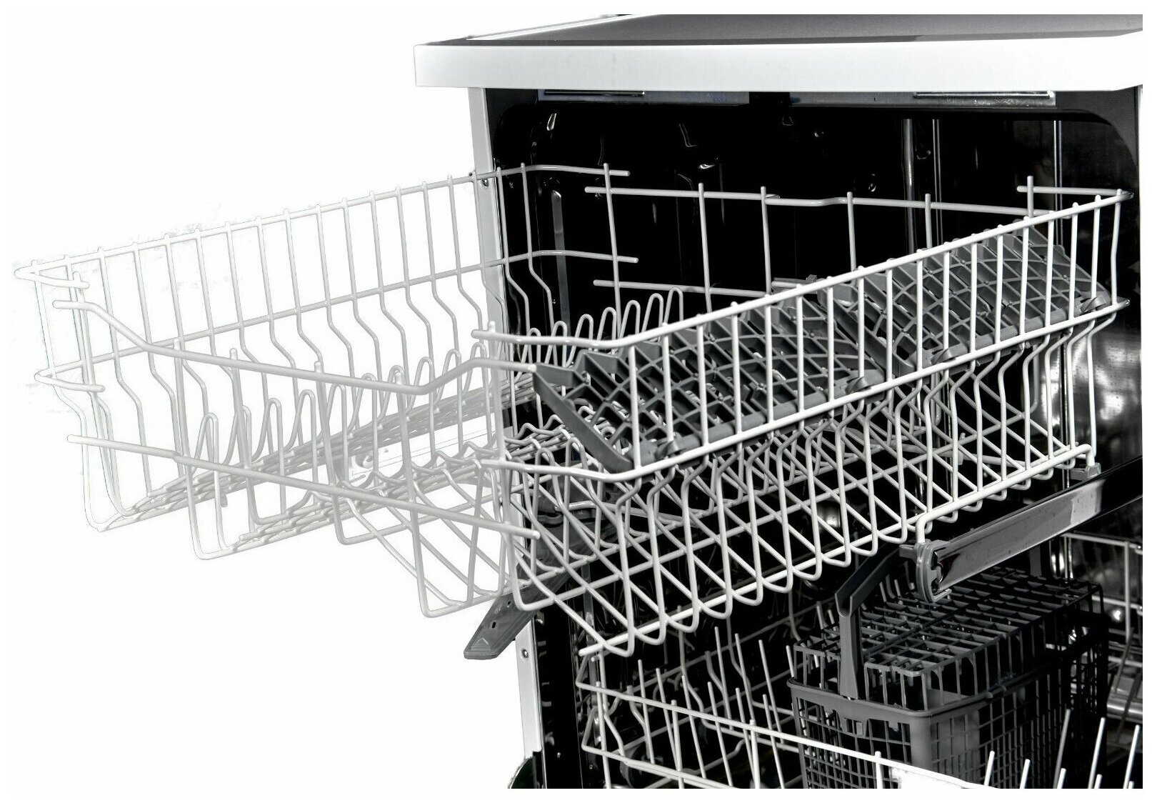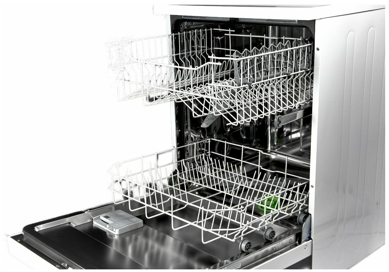 Относительно небольшой размер, внутри можно поместить много посуды одновременно, отмывает практически идеально, если нет намертво налипшей грязи, есть экономичный режим работы