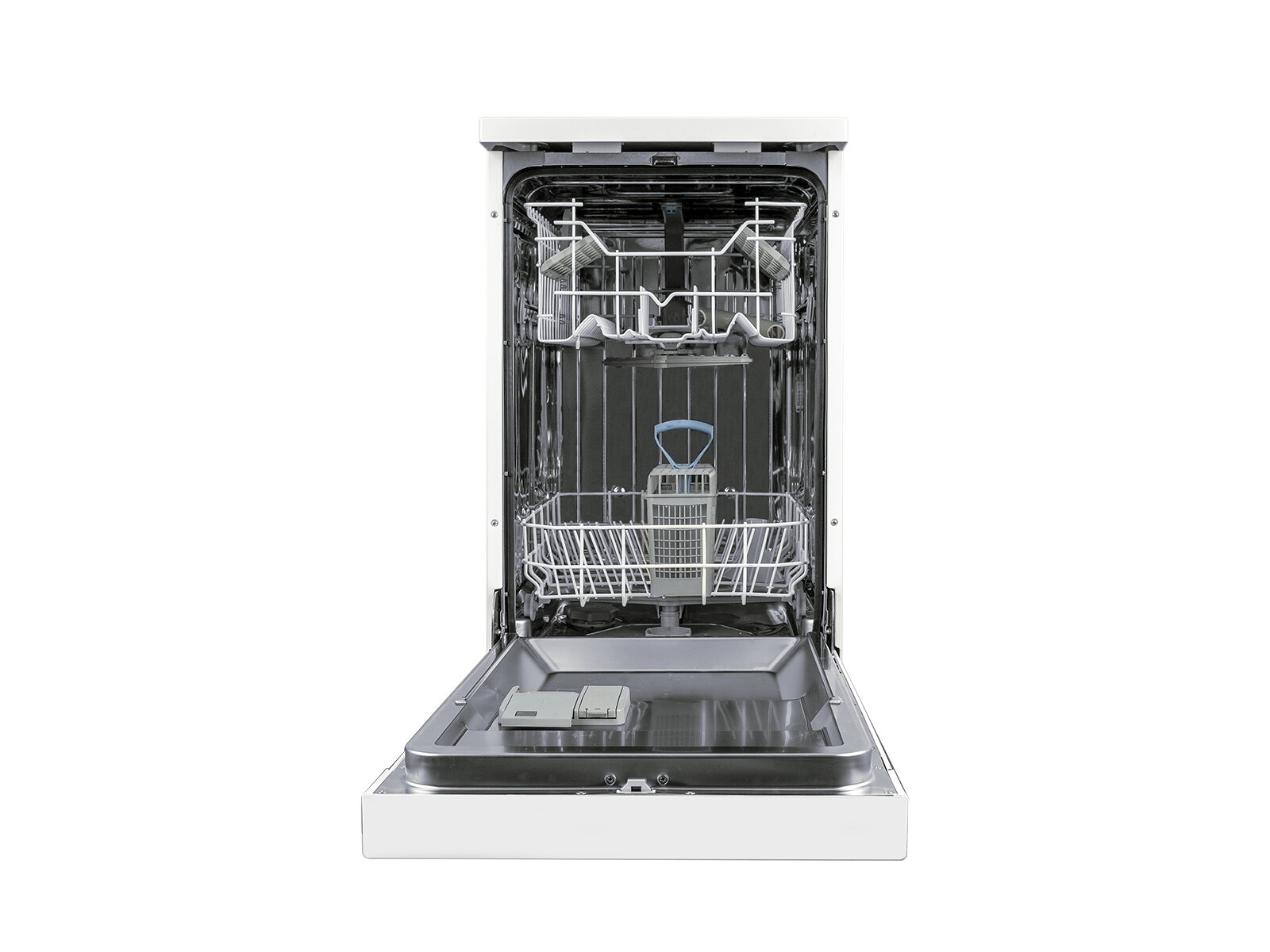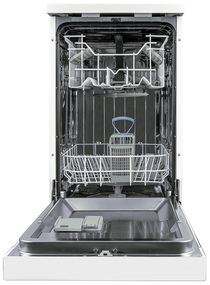 лоток для столовых приборов, сливной шланг, пластиковый держатель для сливного шланга, воронка для засыпки соли, руководство по эксплуатации, гарантийный талон