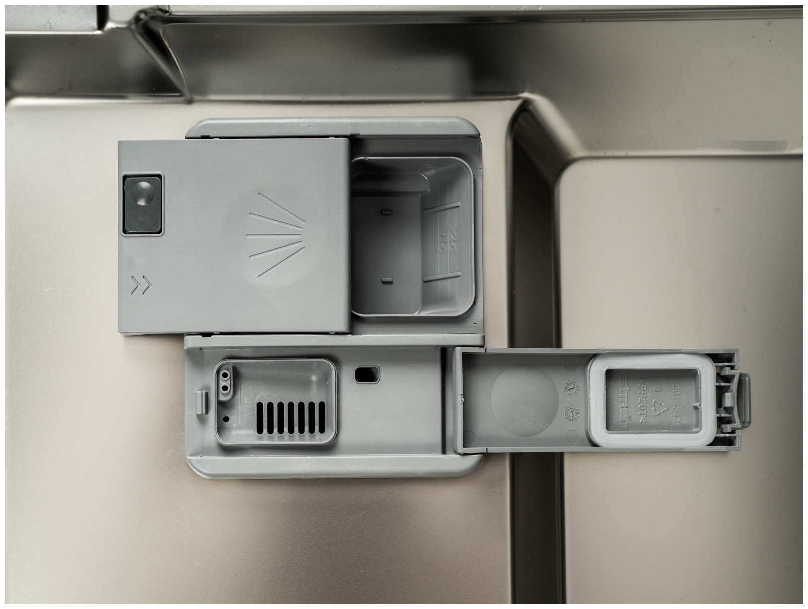 внутренняя поверхность из нержавеющей стали, использование средств 3 в 1, регулируемая по высоте корзина для посуды, таймер отсрочки, 3 температурных режима, Отсрочка запуска, Поддон для столовых приборов, Половинная загрузка, Регулировка высоты корзин, индикатор наличия ополаскивателя, индикатор наличия соли, отложенный старт от 3 до 9 часов, предварительное ополаскивание/замачивание, экономичная программа
