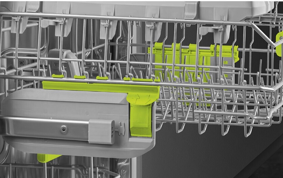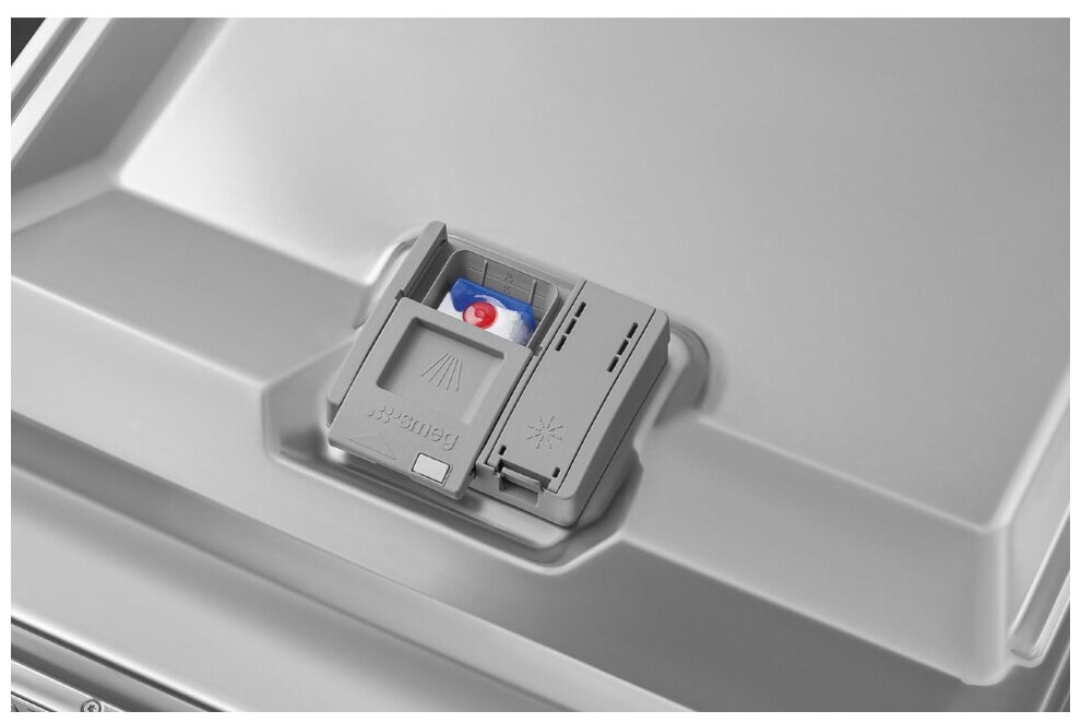 внутренняя поверхность из нержавеющей стали, дисплей, использование средств 3 в 1, регулируемая по высоте корзина для посуды, таймер отсрочки, Автоматическое открывание двери, Внутреннее освещение, Встраиваемая, Звуковой сигнал, Отсрочка запуска, Поддон для столовых приборов, Половинная загрузка, Регулировка высоты корзин, Съемные контейнеры для столовых приборов, Таймер
