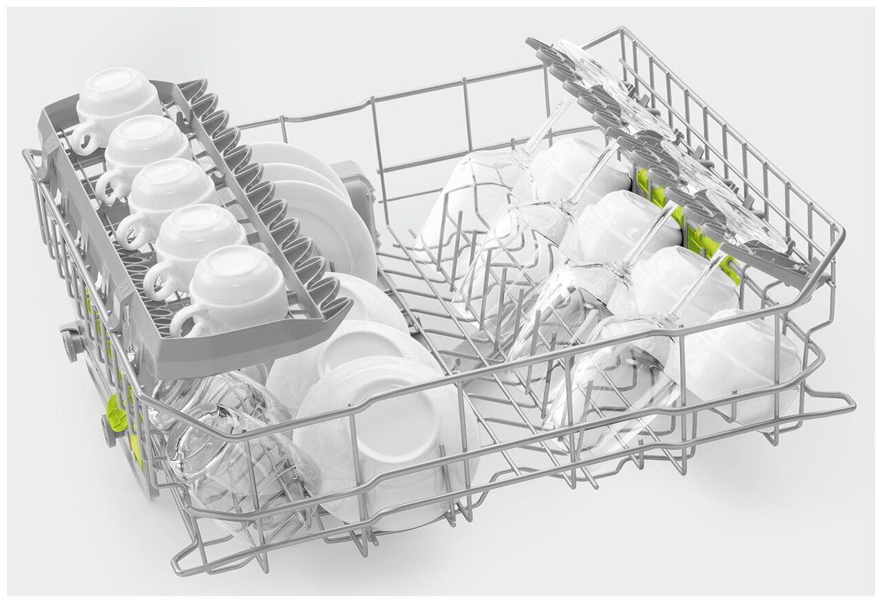 держатель для бокалов, корзина для столовых приборов, Посудомоечная машина; Корзина для столовых приборов; Инструкция; Гарантийный талон, Съемная корзина для столовых приборов