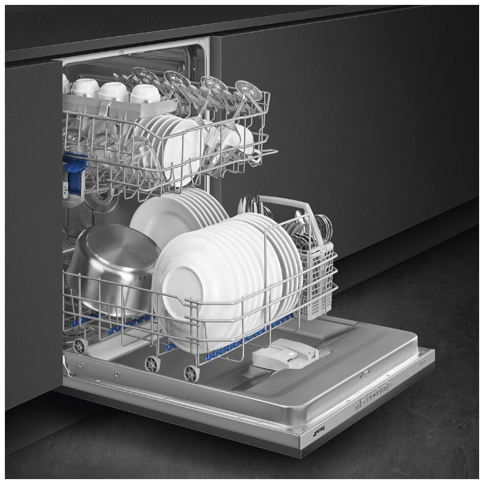 держатель для бокалов, корзина для столовых приборов, Встраиваемая посудомоечная машина Smeg STL281DS, Посудомоечная машина, корзины, документация, воронка для засыпания соли, держатель для бокалов, корзина для столовых приборов, документация посудомоечная машина