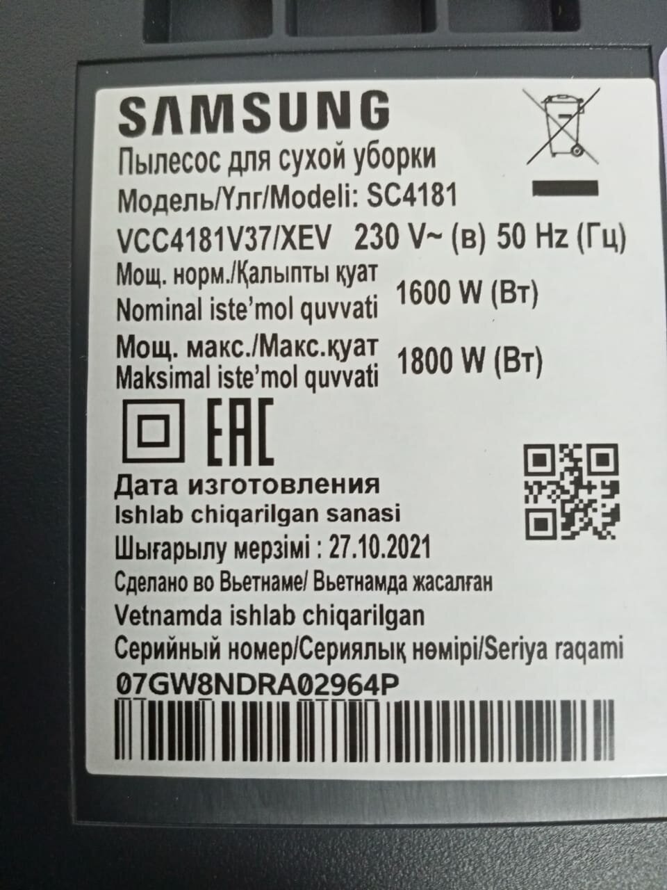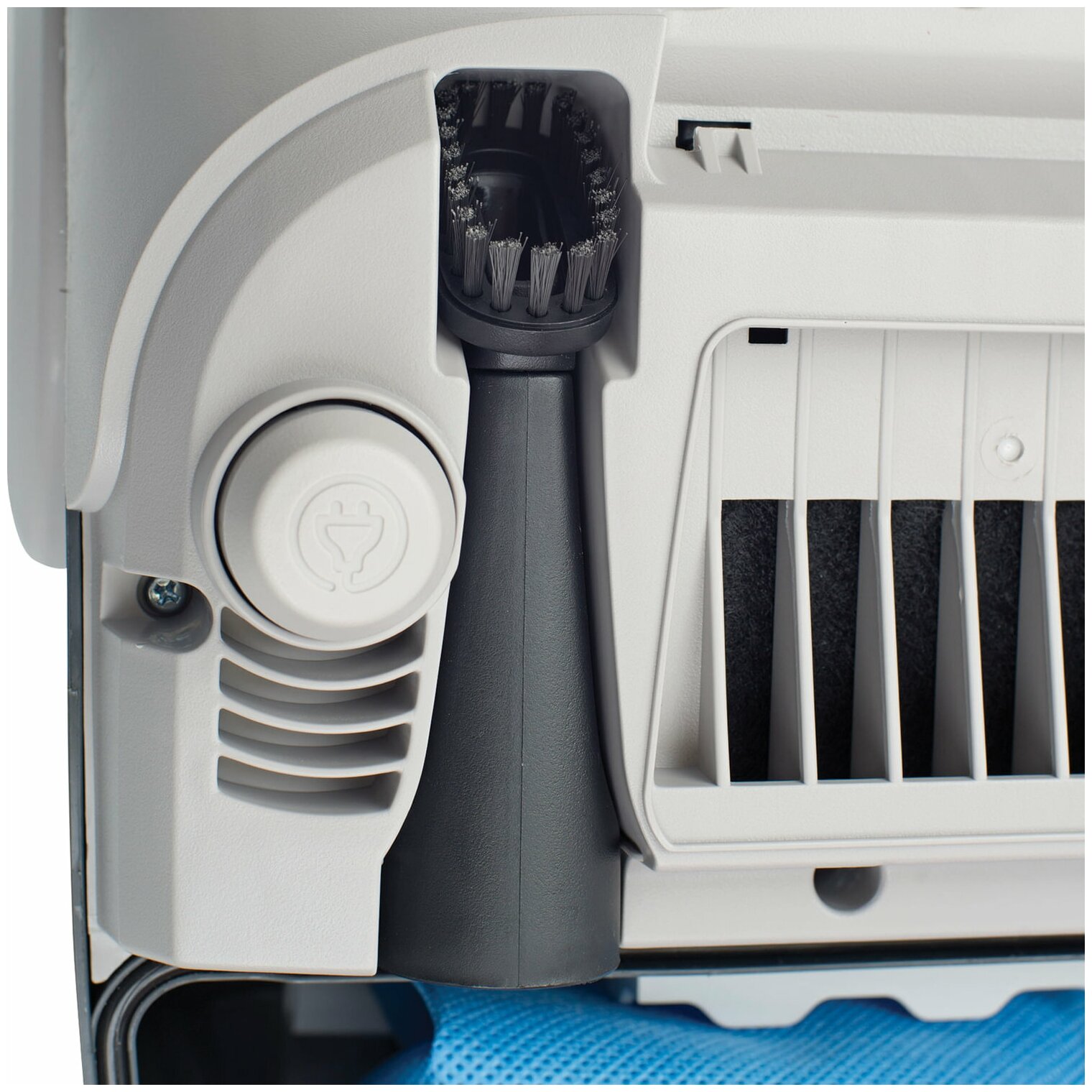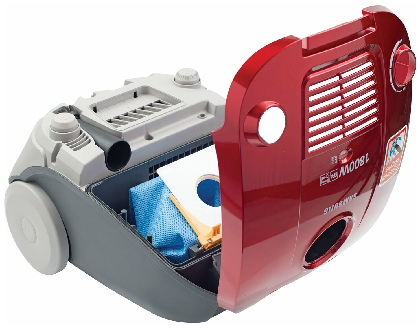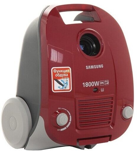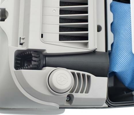 вертикальная парковка, индикатор заполнения пылесборника, ножной переключатель вкл./выкл., регулятор мощности на корпусе, автосматывание сетевого шнура, вертикальная парковка трубы всасывания на корпусе пылесоса, ножной переключатель вкл./выкл. на корпусе