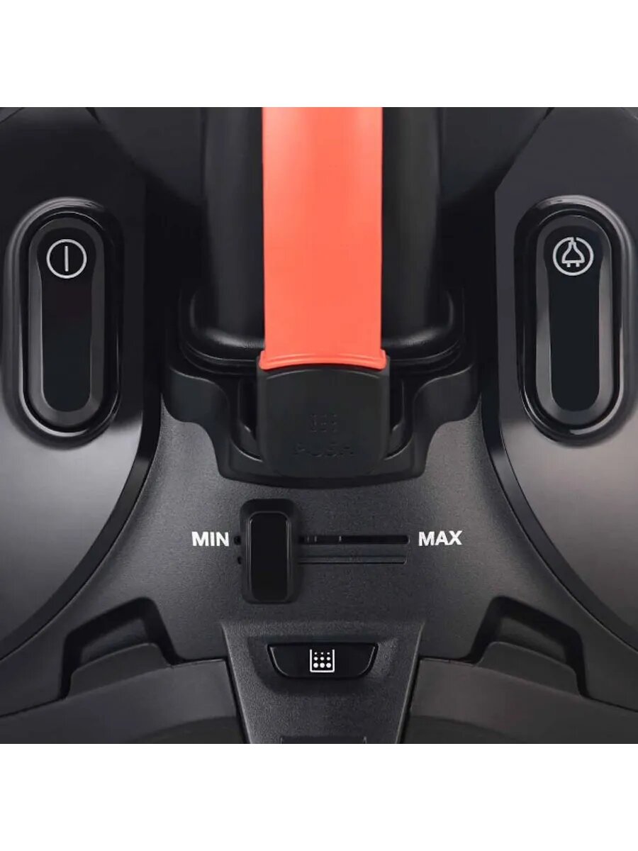 вертикальная парковка, индикатор заполнения пылесборника, мягкий бампер, ножной переключатель вкл./выкл., регулятор мощности на корпусе, управление мощностью на рукоятке, автоматическая смотка шнура, автоматическое сматывание шнура