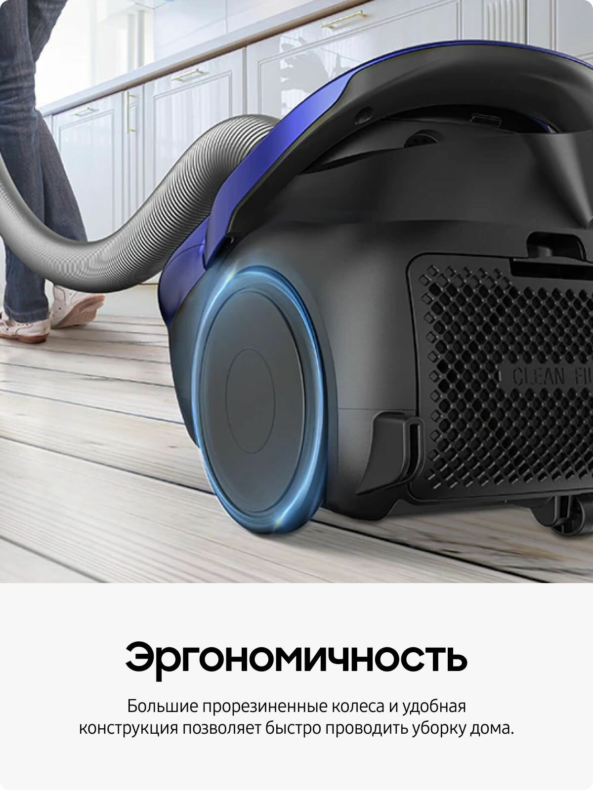 автоматическое прессование пыли, автоматическое сматывание шнура, Автоматическая смотка шнура, Большие колеса, Горизонтальная парковка, Индикатор заполнения пылесборника, Контейнер для насадок, Регулировка мощности, индикатор заполнени, индикатор заполнения пылесборника, регулятор мощности на корпусе