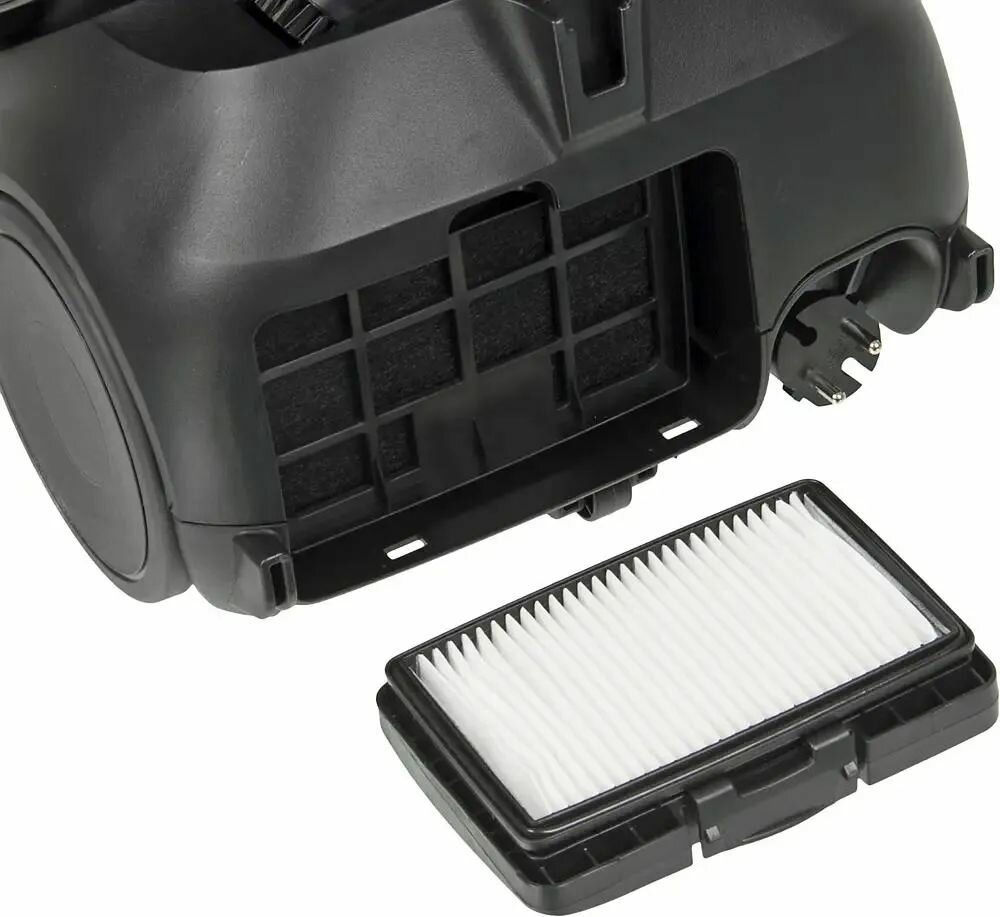 ширина зоны уборки 265 мм; фильтр перед мотором; поворотный шланг (360 градусов); радиус зоны уборки 9.2 м