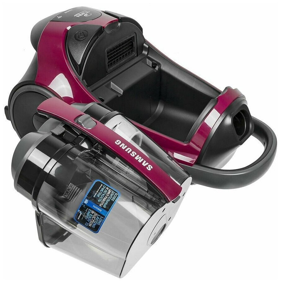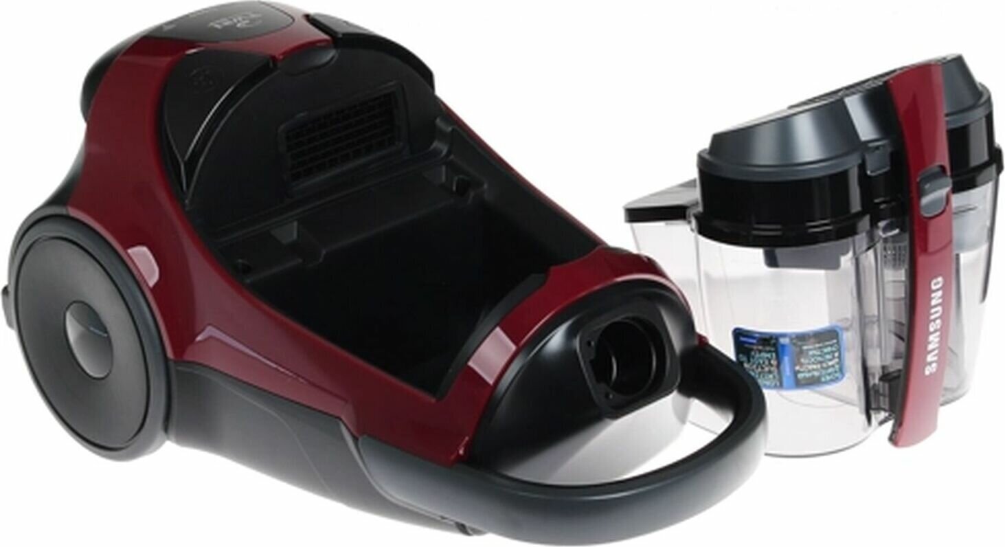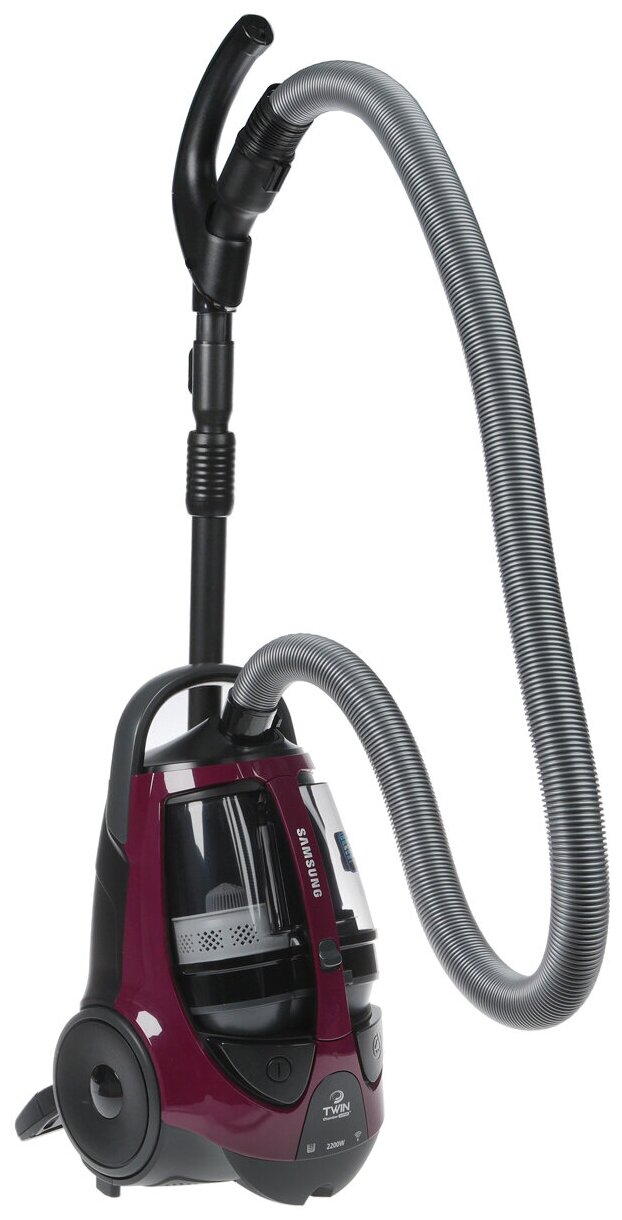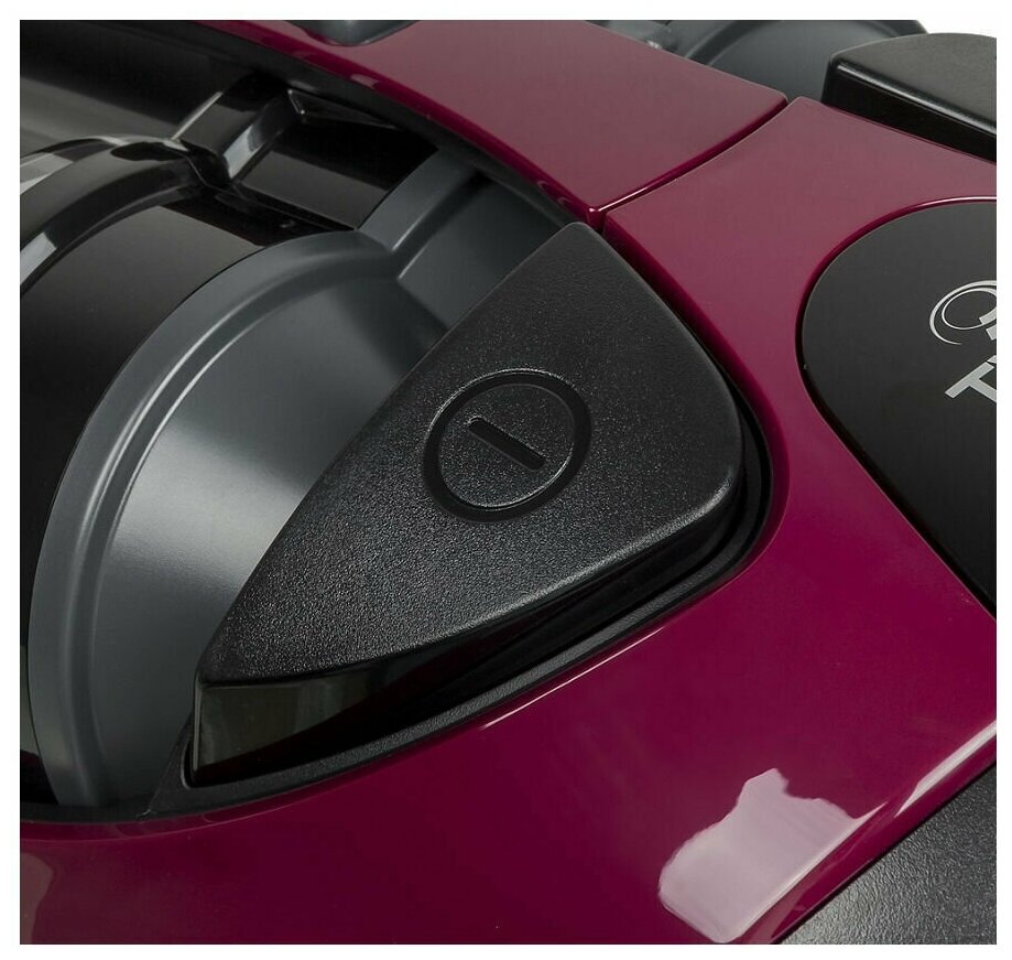 вертикальная парковка, индикатор заполнения пылесборника, место для хранения насадок, ножной переключатель вкл./выкл., регулятор мощности на корпусе, управление мощностью на рукоятке, автосматывание сетевого шнура