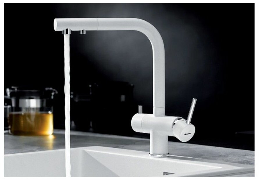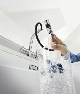 аэратор, встроенный фильтр, поворотный излив, система быстрого монтажа, Гибкая подводка, С краном для питьевой воды