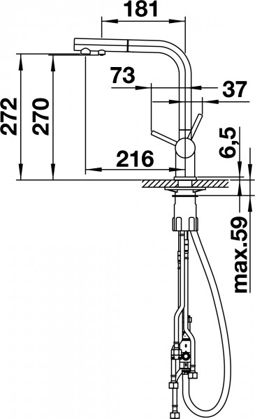 выдвижной, гибкий, поворотный, Высокий, Длинный, Совмещенный излив для питьевой воды, высота 267 мм