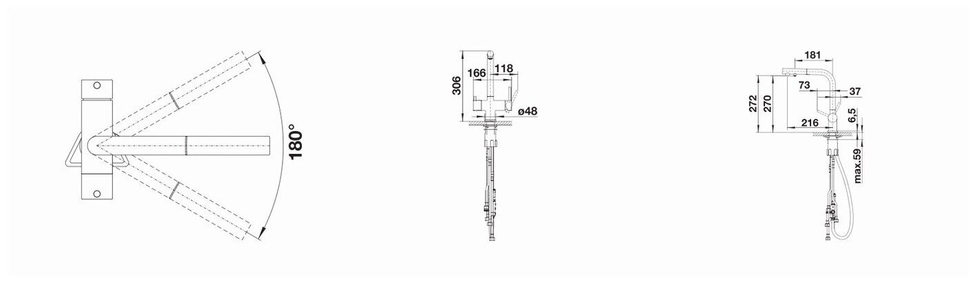 выдвижной, поворотный, Высокий, Длинный, Совмещенный излив для питьевой воды, высота 267 мм