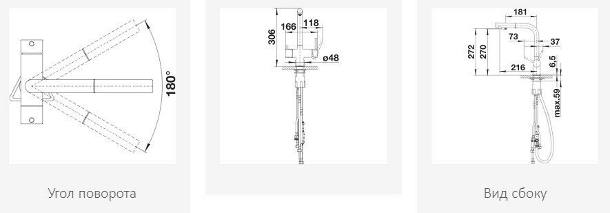 выдвижной, высота 272 мм, длина 216 мм, длинный, с двойным изливом