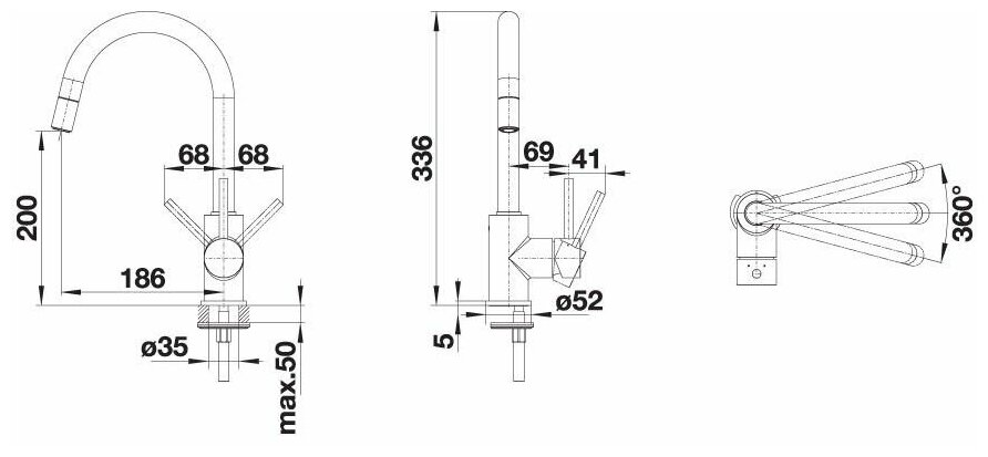 аэратор, встроенный фильтр, поворотный излив, Лейка