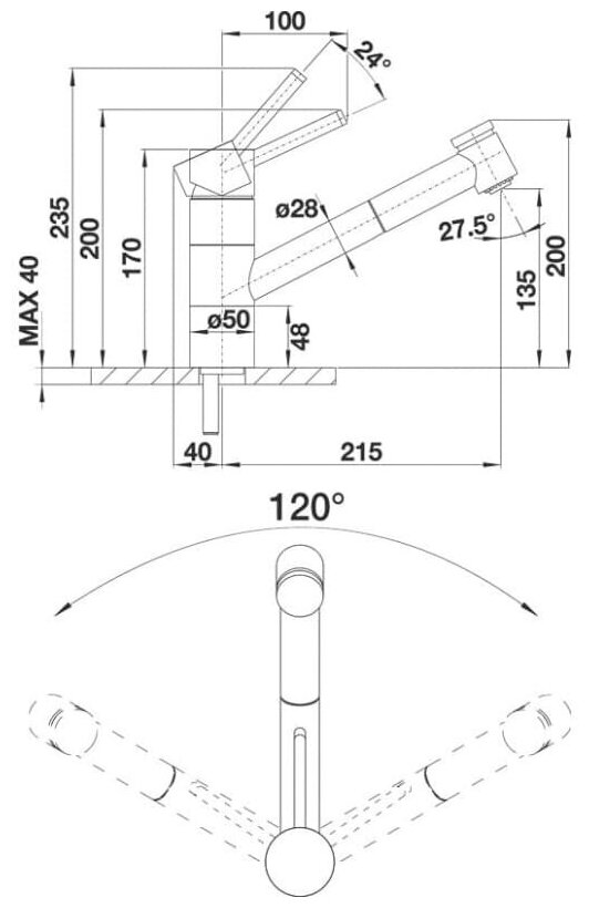 выдвижной, поворотный, Длинный, высота 135 мм, длина 215 мм, стандартный