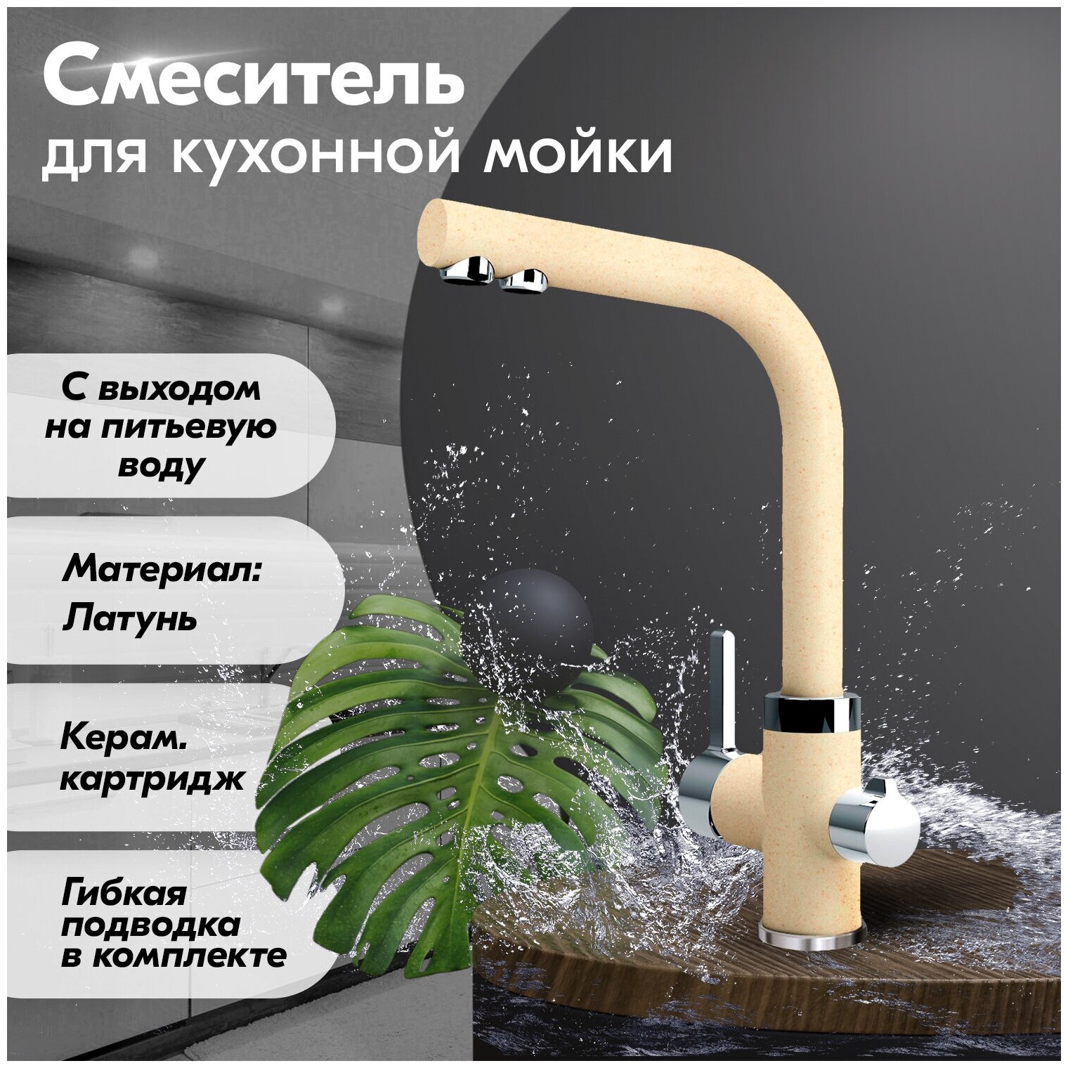 для кухни (мойки), для раковины (умывальника), смеситель для кухни, смеситель для кухни с подключением фильтра