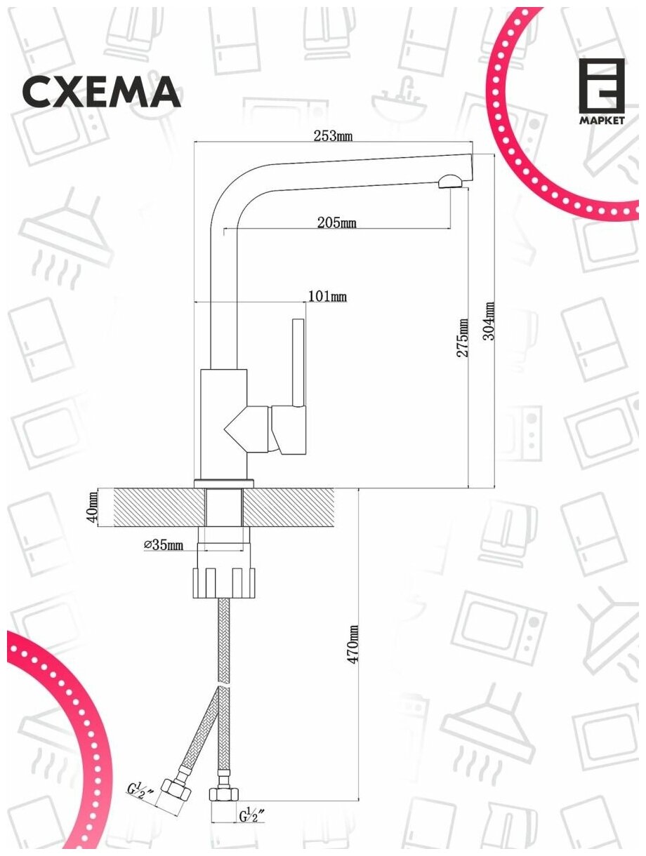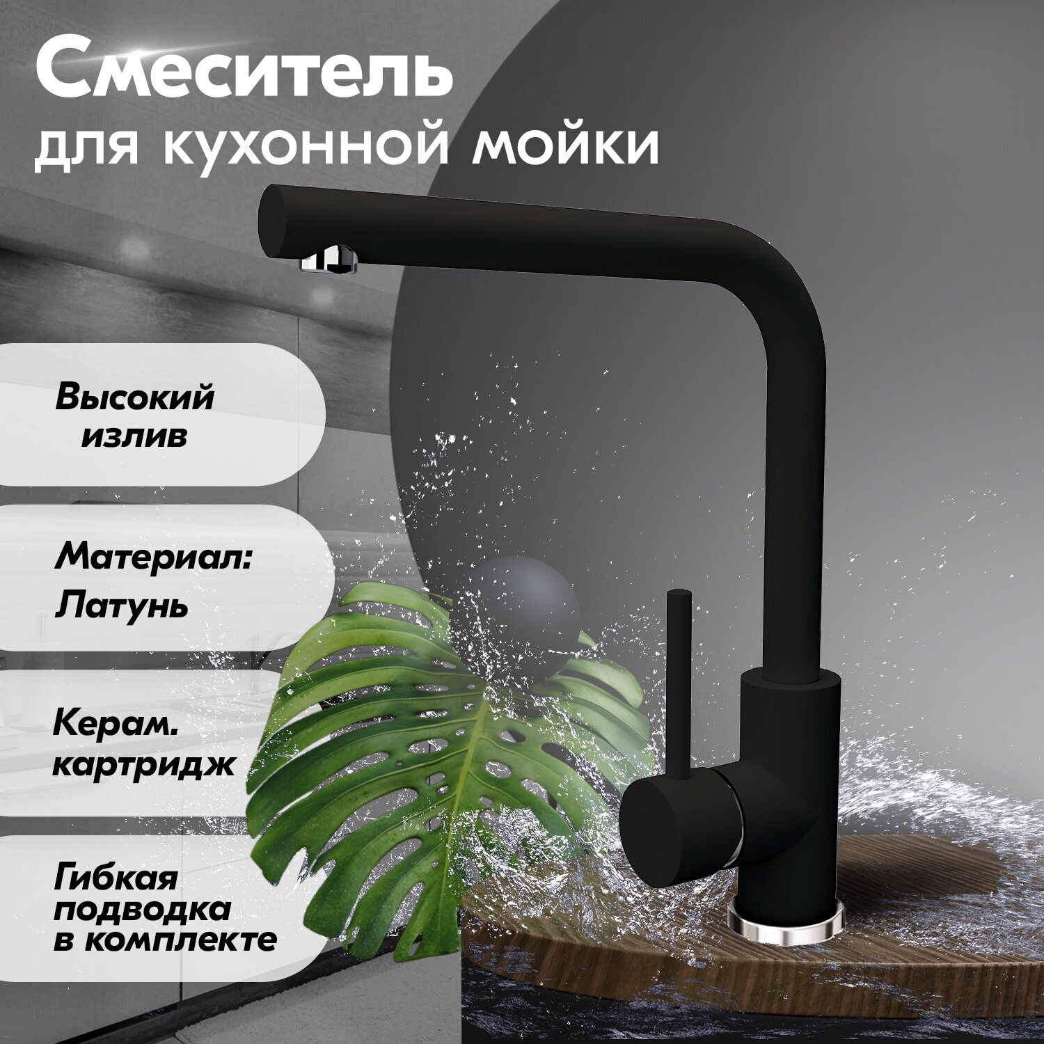 аэратор, встроенный фильтр, поворотный излив, Гибкая подводка, аэратор,поворотный излив