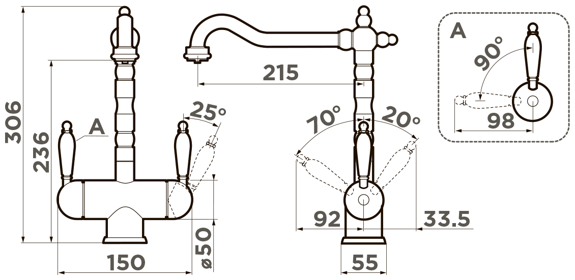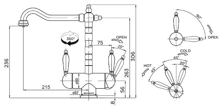 - Классический дизайн и удобство использования благодаря высокому изливу;
