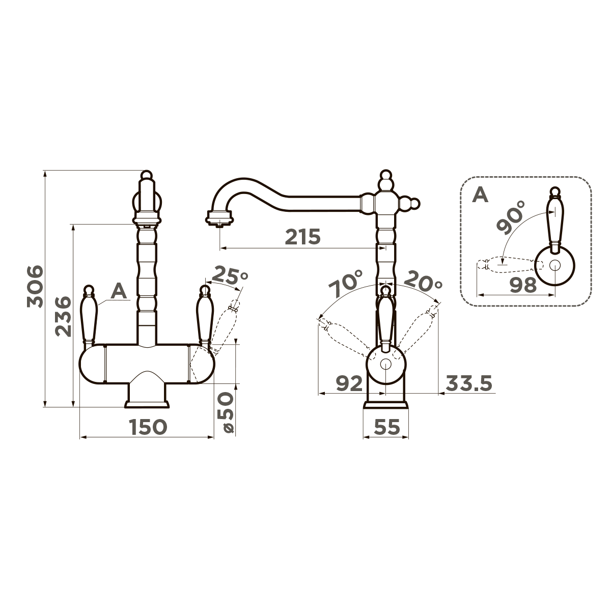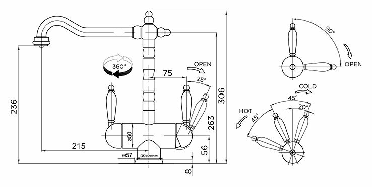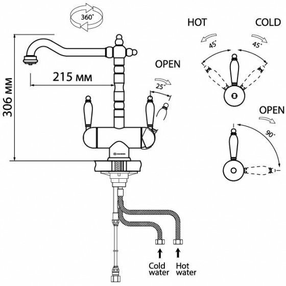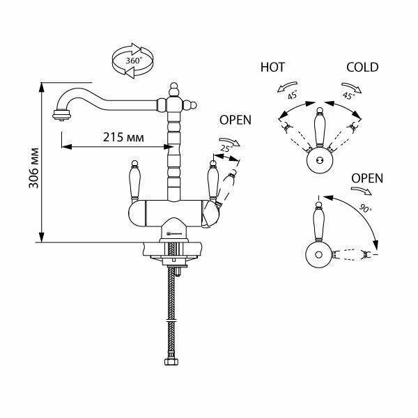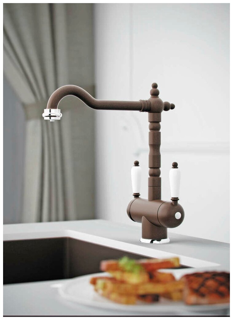 - Классический дизайн и удобство использования благодаря высокому изливу;