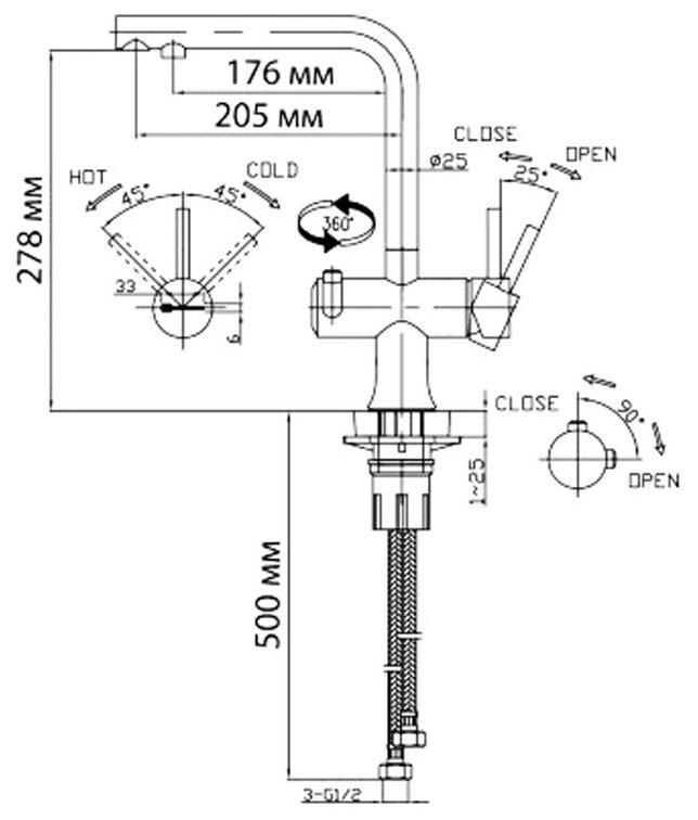 - Технология PURE LIFE®: подключение фильтра для очистки воды. Фильтрованная вода подается по отдельной трубке и не смешивается с водопроводной водой;